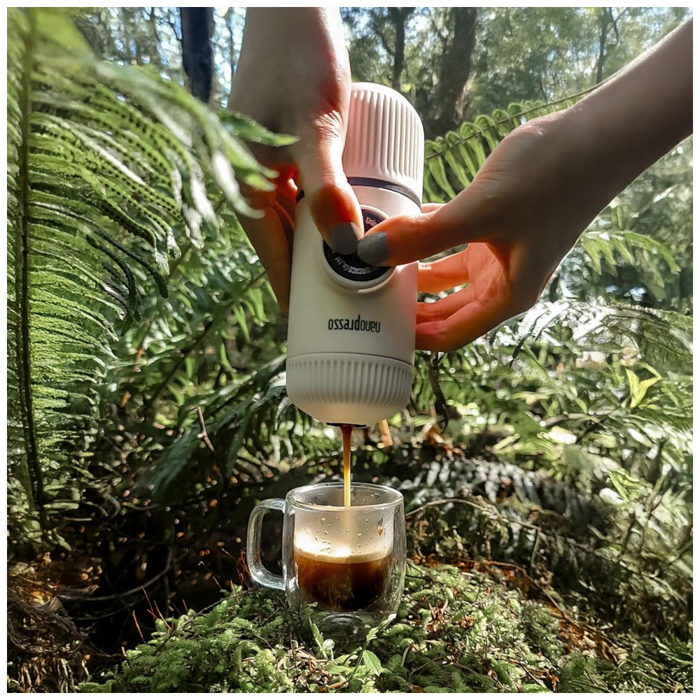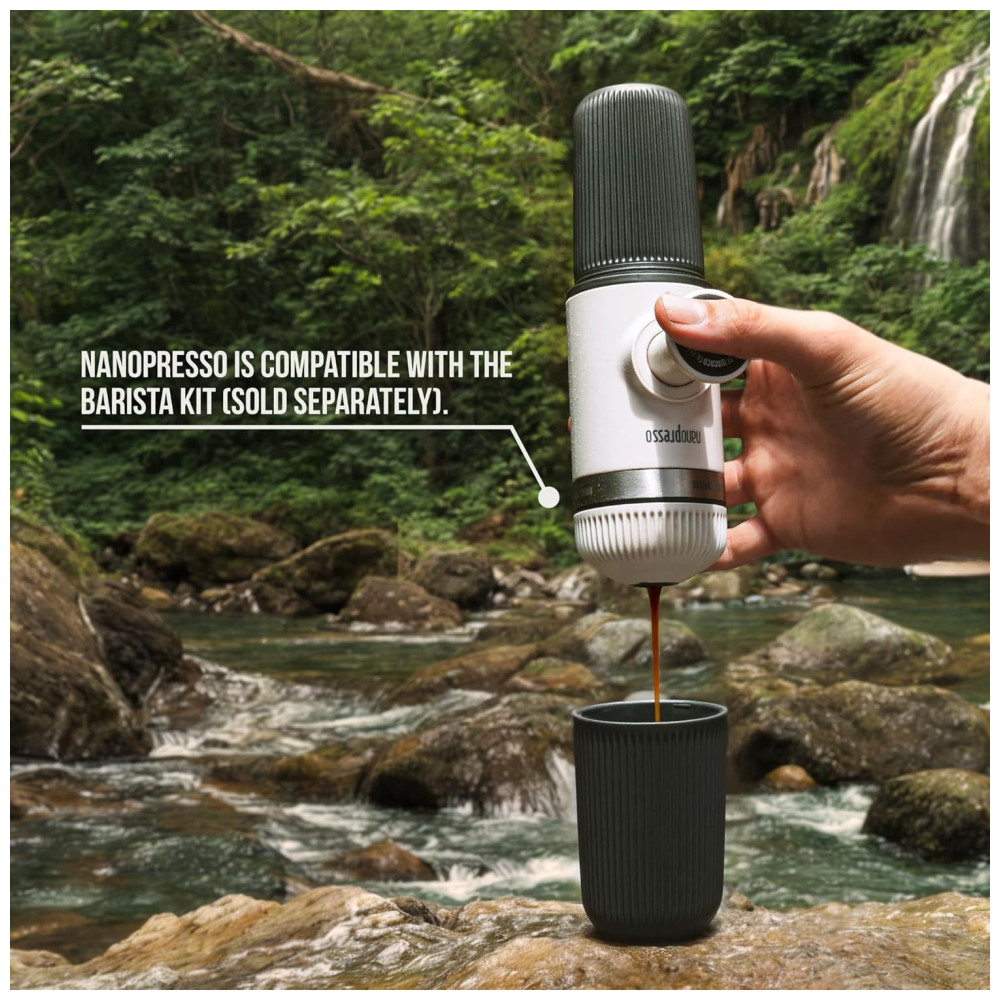Construído em torno de um sistema de bombeamento patenteado e sem necessidade de bateria , eletricidade. Com a ajuda de suas mãos, um máximo de 261 PSI de pressão estável é criado durante a extração para café sem paralelo. É mais do que o que a maioria das máquinas de café expresso domésticas pode oferecer. MAIS FÁCIL DO QUE NUNCA. Funciona melhor com todas as variedades de café moído. Adicione a água fervente ao tanque antes de preparar o café e depois bombeie manualmente. é deliciosamente fácil de operar e fácil de preparar seu café favorito em qualquer lugar. O design ergonômico e o menor comprimento do Nanopresso fazem dele o seu companheiro de viagem preferido. Projetado para ser extremamente leve. No entanto, projetado para ir onde quer que você vá. Sua construção proporciona uma sensação tranquilizadora e sólida. O comprimento total é de 15,6cm e o peso é de apenas 336 g. MAIS CAPACIDADE DE ÁGUA O tanque de água pode conter até 80 ml de água. É forrado e protegido pelo copo destacável. Ambas as partes possuem um padrão de dissipador de calor para absorver e proteger as mãos do calor