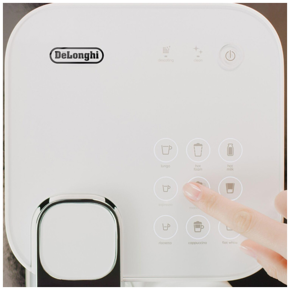 Um toque faz tudo A tecnologia patenteada de leite fresco de um toque da DeLonghi combinada com o sistema de cápsulas premium Nespresso permite que você crie receitas perfeitas de qualidade Barista sempre com o toque de um botão