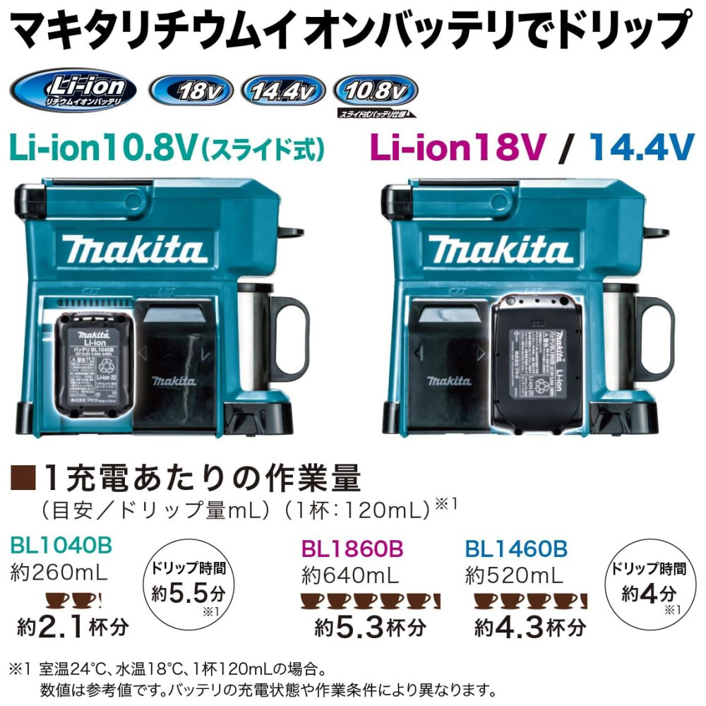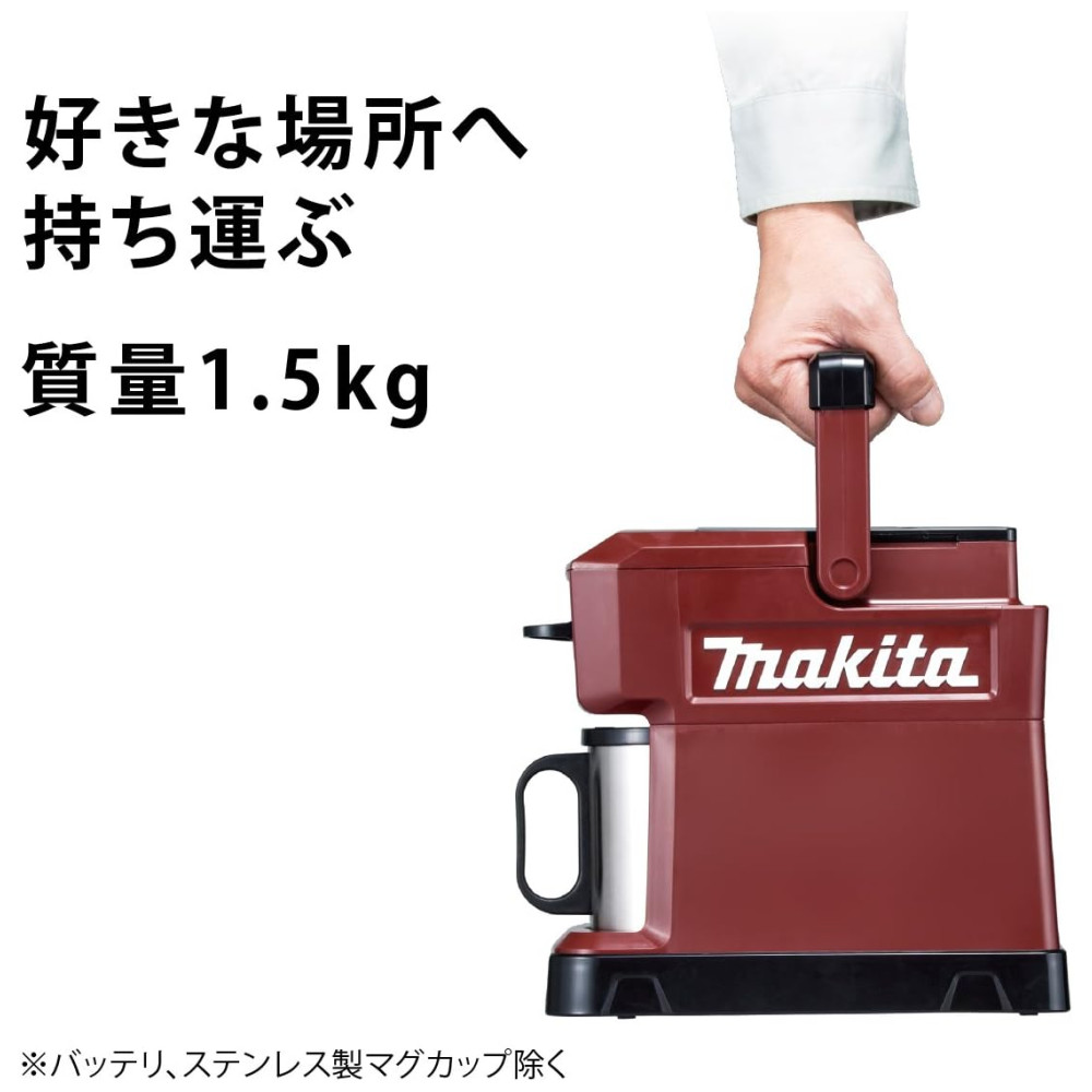 Essa cafeteira Makita é alimentada por bateria e leva em 18v, 14,4v e IDK como mas também a velha 10,8v ela diz na caixa e você irá adorar, ela não tem fio e vem com um par de acessórios que são