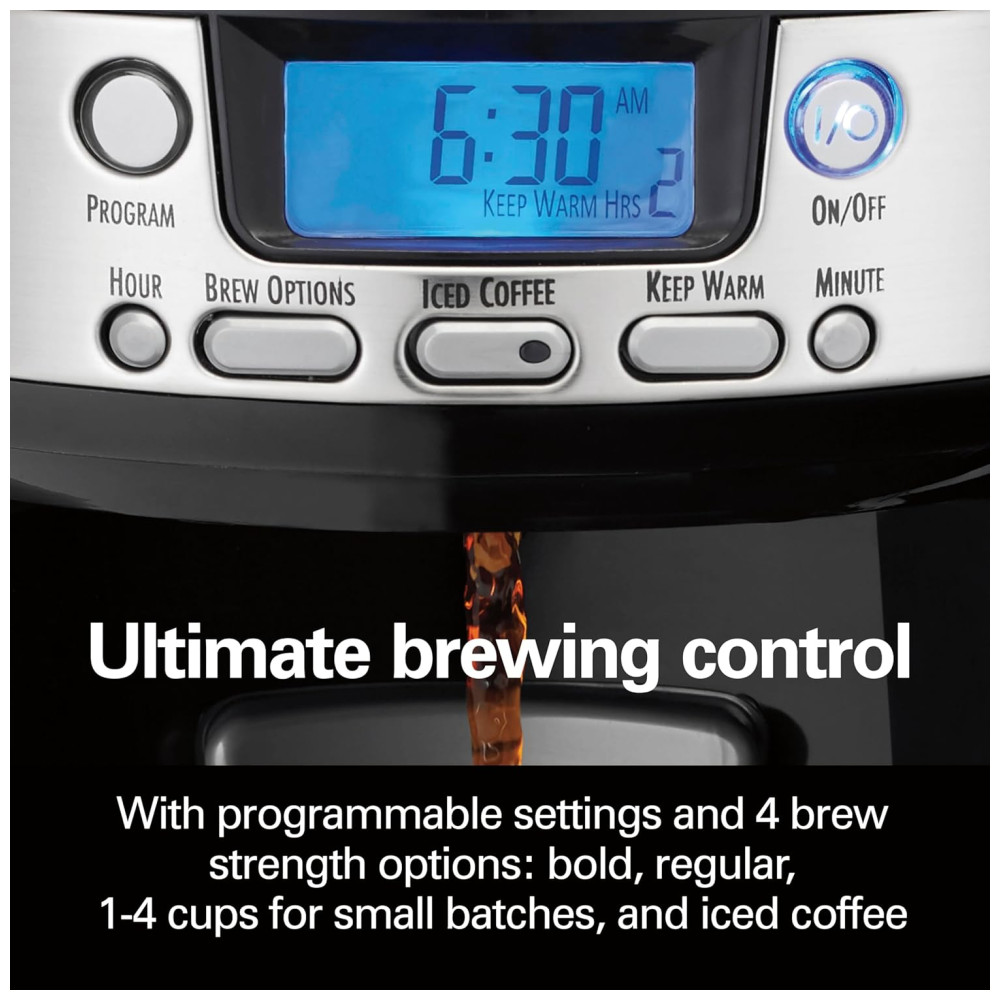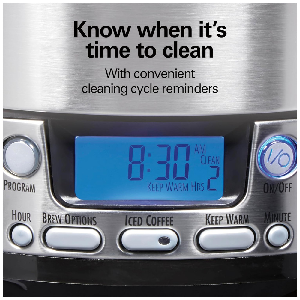 Cafeteira Elétrica Programável 12 xícaras Aço Inoxidável Reservatório Removível HAMILTON BEACH 47950 Prateado