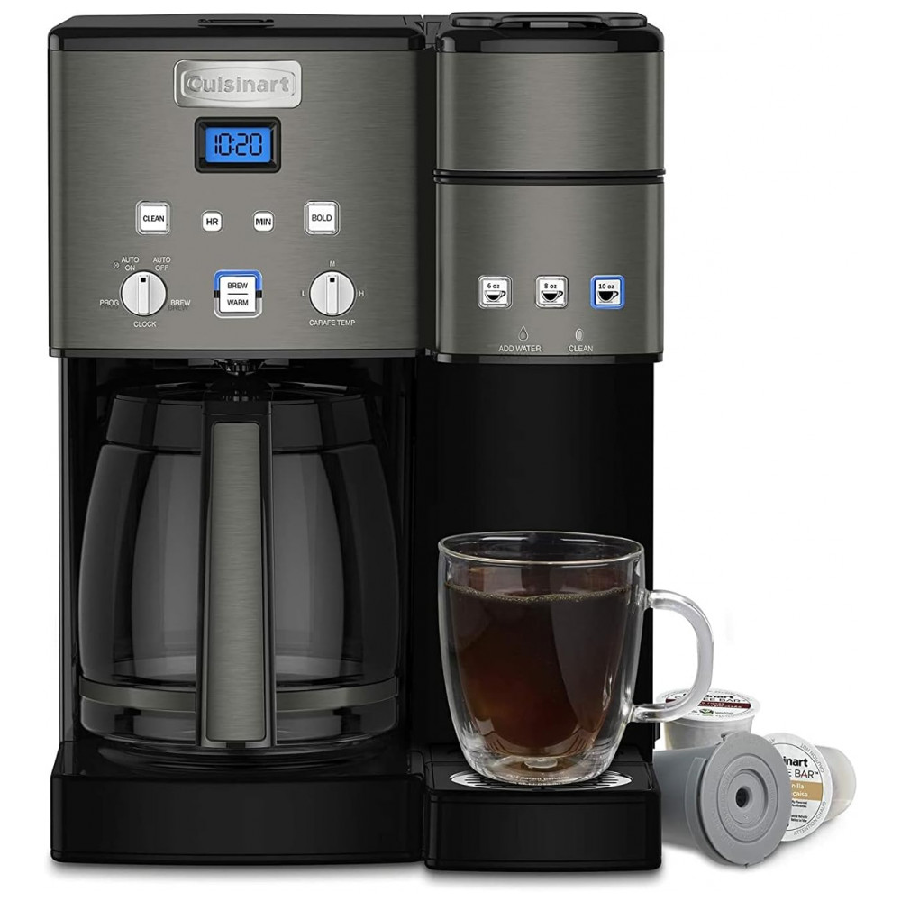Jarra de vidro de 12 xícaras com alça livre de BPA e aço inoxidável controle de intensidade de infusão selecione negrito para obter um sabor mais forte do café o filtro de café de tom dourado permite que apenas o sabor puro do café flua tamanhos de porção única 177ml, 236ml, 295ml Totalmente automático início de preparação de 24 horas, autolimpeza, desligamento automático ajustável e alerta de pronto Inclui copo de filtro reutilizável Cuisinart home Barista que permite usar seu próprio café, compatível com K Cup Pod também. O centro de café Cuisinart possui uma cafeteira totalmente automática de 12 xícaras de um lado e uma cafeteira de serviço único do outro. Bebendo sozinho ou servindo uma multidão, é fácil apreciar o sabor gourmet que você espera de uma cafeteira Cuisinart. E uma cafeteira que faz o trabalho de duas libera mais espaço no seu balcão Características Serviço único 3 doses 177ml, 236ml, 295ml Compatível com vagens K Cup Inclui o copo de filtro reutilizável HomeBarista da Cuisinart, que permite usar seu próprio café Reservatório removível de 1,2L Modo de economia de energia Modo de economia de energia canecas de viagem Filtro de água de carvão Cervejeiro de jarra Jarra de vidro de 12 xícaras com alça de aço inoxidável Totalmente automático alerta de pronto para desligamento automático com início automático de 24 horas para fermentação 24 horas Controle de força de infusão selecione Negrito para um sabor mais forte de café Jarra ajustável temperatura Janela de visualização fácil da água Recurso Brew Pause despeje um copo antes do término do ciclo de fabricação O filtro de café de tom dourado permite que apenas o sabor puro do café flua Sem BPA