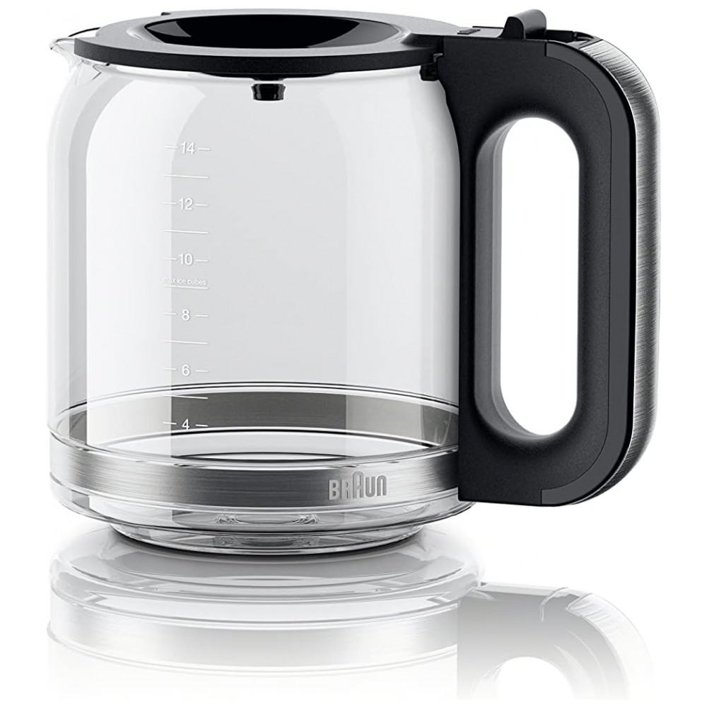 Componentes incluídos: Máquina de café Braun Pure Flavor 14 xícaras, filtro permanente dourado, cesta de filtro, suporte de filtro de água a carvão, jarra de vidro, tampa, colher medidora de café
