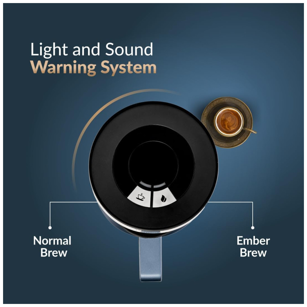 FUNÇÃO EMBER COOKING A máquina de café turco ETHNIQ não apenas prepara a xícara de café perfeita, mas também possui uma função de cozimento Ember que permite obter espuma e sabor duplos e oferece a seus convidados ou a você uma experiência de degustação semelhante como se fosse fabricado sobre areia ou brasa.