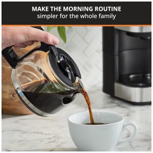 PERFEITO PARA UM OU DOIS Prepara até 5 xícaras de café. CONVENIENTE Permite derramar uma xícara de café durante a infusão e mantém o café quente automaticamente. SIMPLES E FÁCIL DE USAR Jarra com bico anti gotejamento, que controla a bagunça botão On , Off fácil para iniciar a distribuição e desligar a máquina e um tanque de água convenientemente localizado. PROJETO MODERNO Acabamento premium em aço inoxidável. ACESSÓRIOS INCLUÍDOS Cafeteira de vidro, filtro permanente e colher de café para as suas necessidades diárias de fabricação