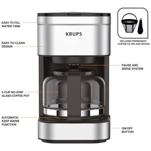 Cafeteira Elétrica Programável Até 5 Xícaras Aço Inoxidável Antigotejamento Cor KRUPS KM202850 Prateado