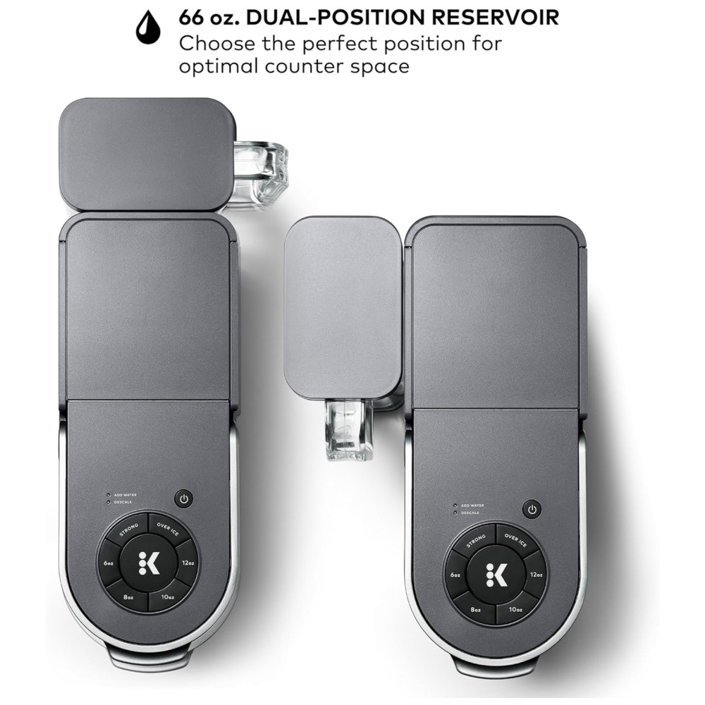 RESERVATÓRIO DE DUPLA POSIÇÃO de 1,95 mL Escolha a posição perfeita para um espaço de balcão ideal. Reservatório removível facilita o reabastecimento.