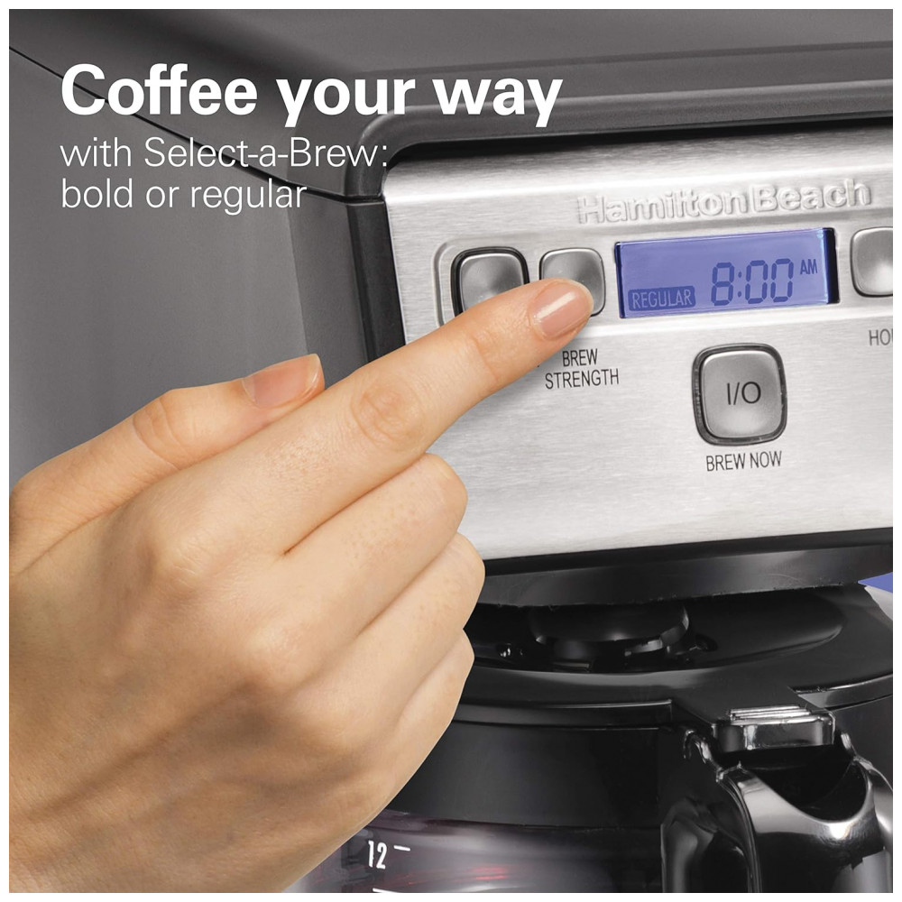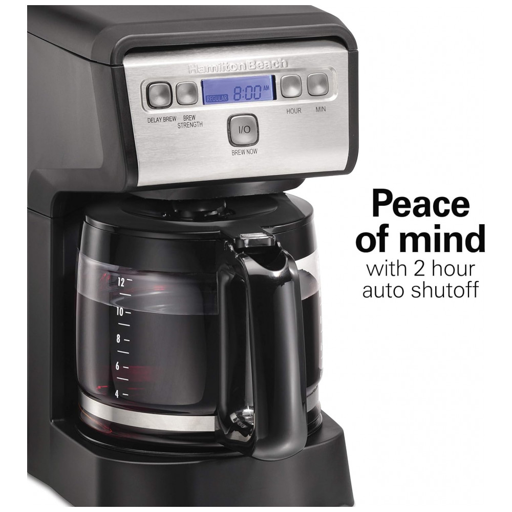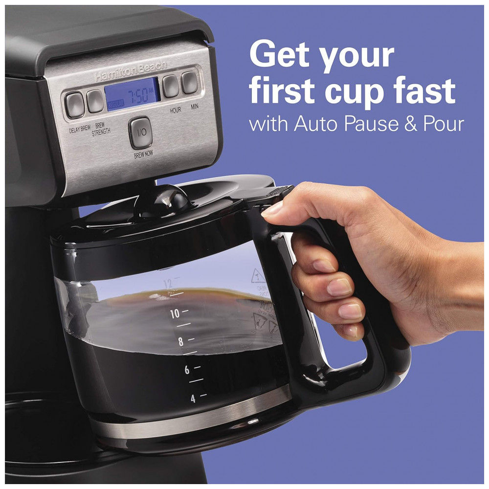 Cafeteira Elétrica Programável com Jarra de Vidro 12 Xícaras e Desligamento Automático 110V 900W Hamiton Beach Preta