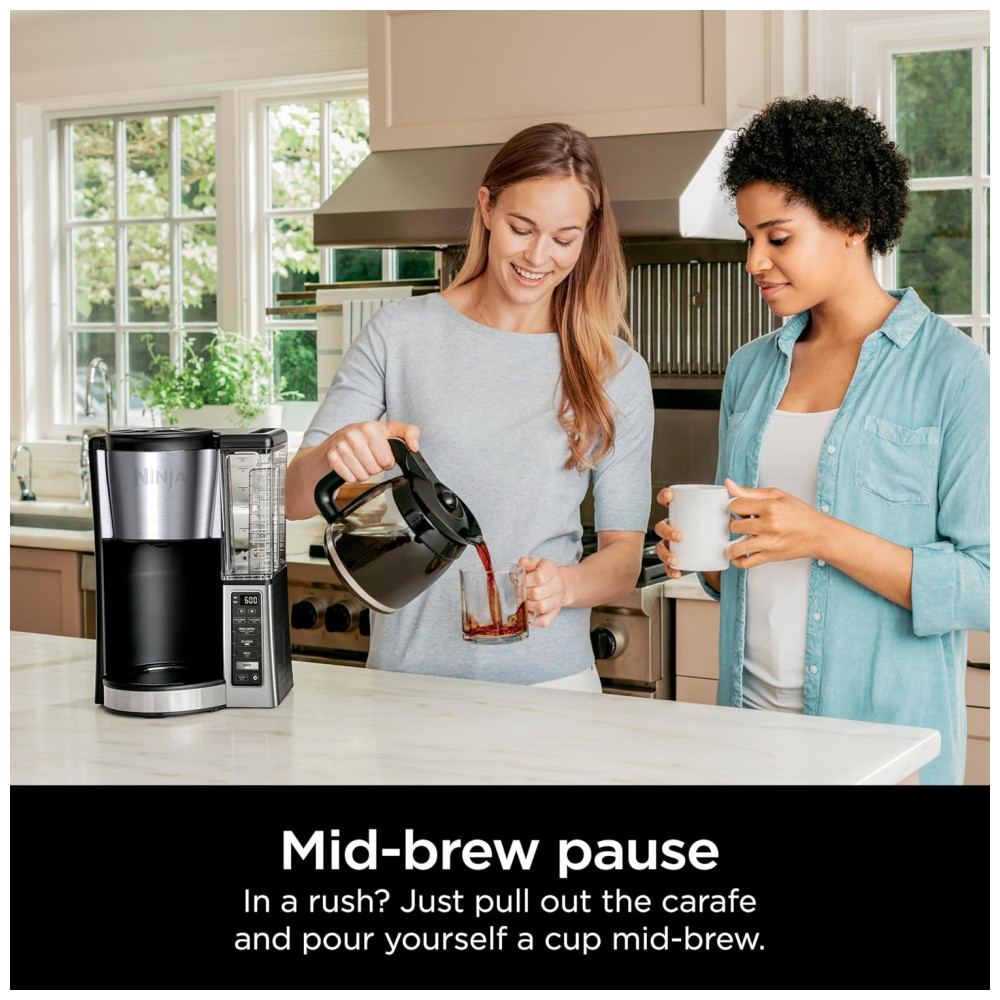 O que está incluído: Cafeteira Programável Ninja, Jarra de Vidro de 12 xícaras, Filtro Permanente, Colher Integrada Ninja e Reservatório de Água Removível.
