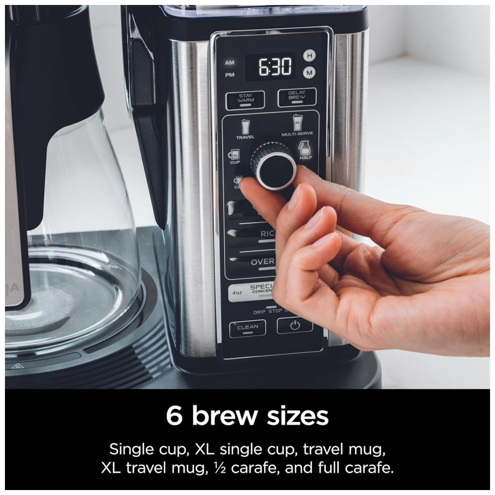 Cafeteira Elétrica Programável Especial com Jarra de Vidro de 50 Oz Acabamento e Aço Inoxidável NINJA CM401 Preto