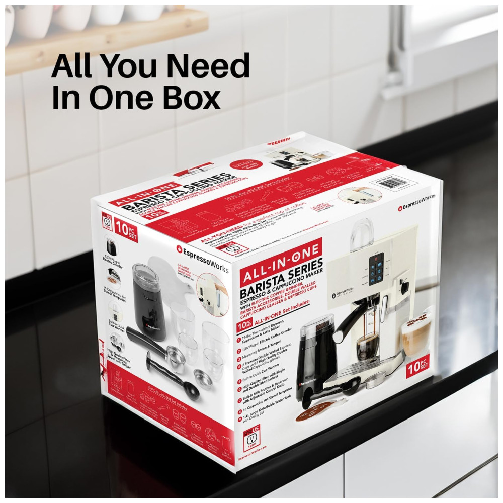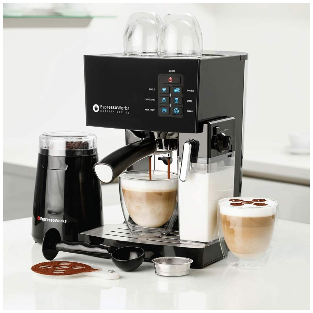 Cafeteira Elétrica Programável EspressoWorks Expresso e Cappuccino 10 Peças Barista Multifuncional Moedor de Grãos