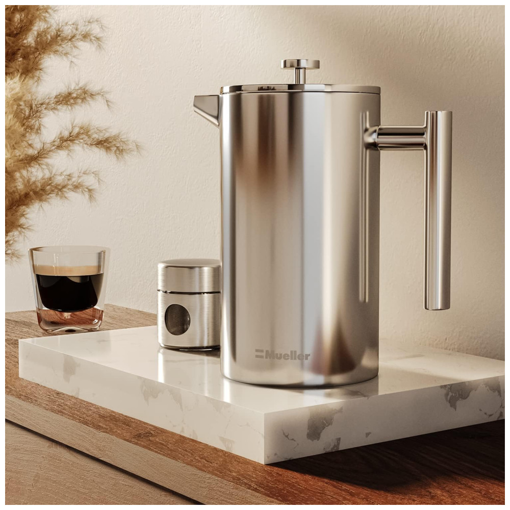 Cafeteira Elétrica Programável Francesa Aço Inoxidável Ideal para Café Chá Leite com Espuma MUELLER AUSTRIA MU SSHYDPRESS Cinza