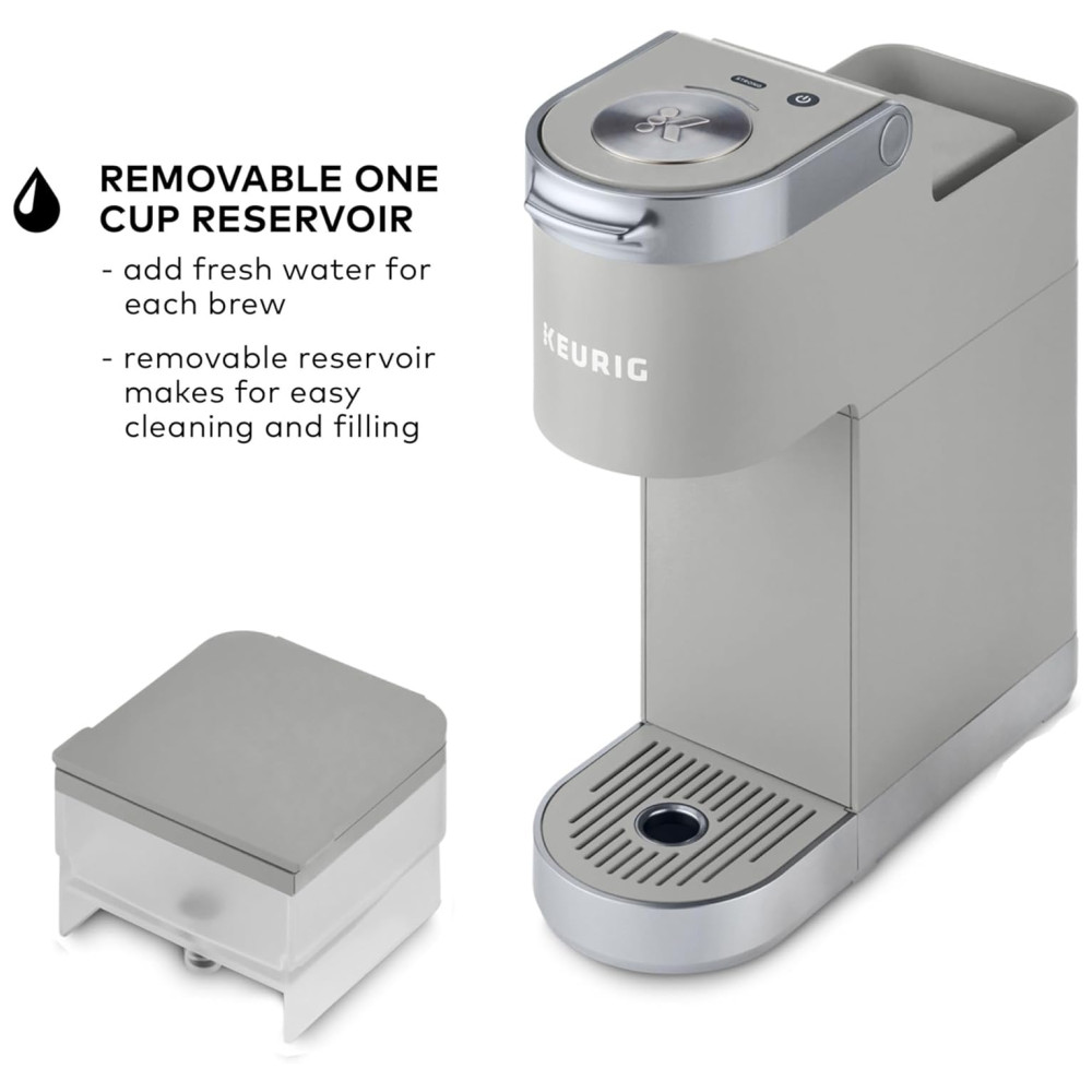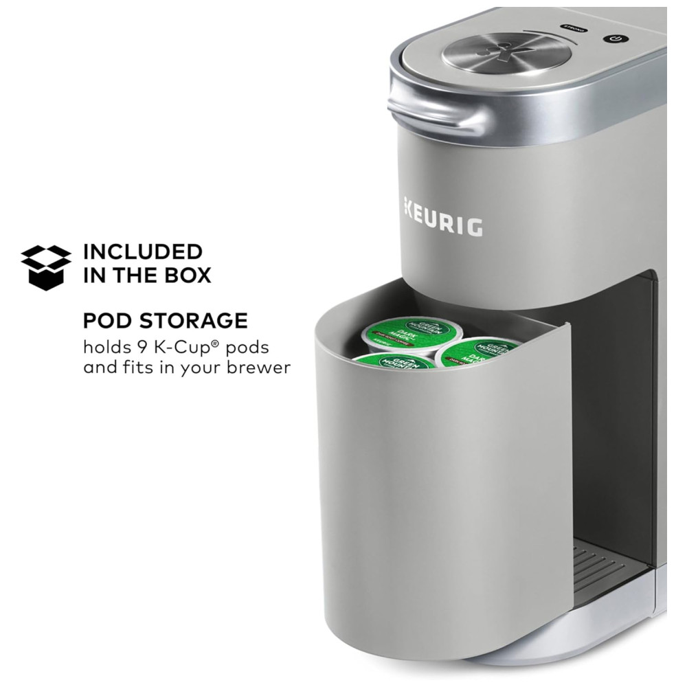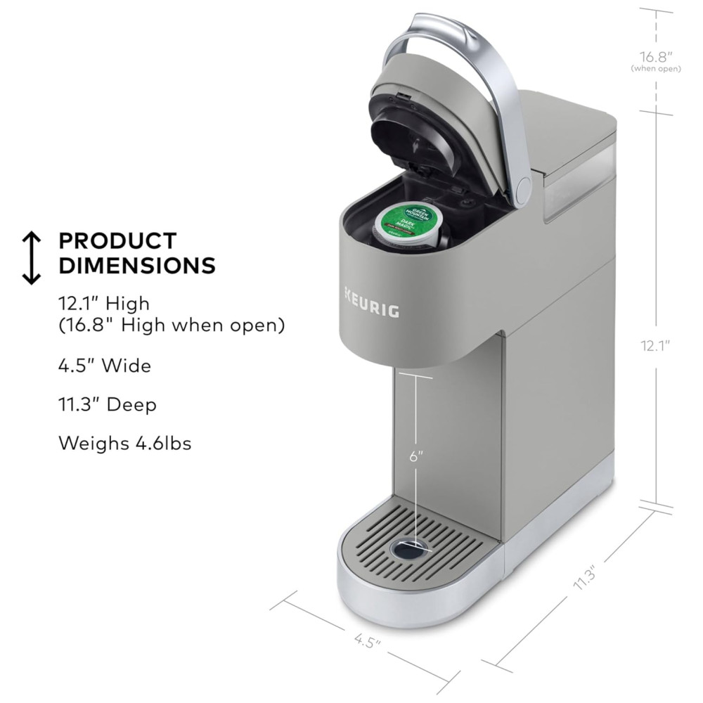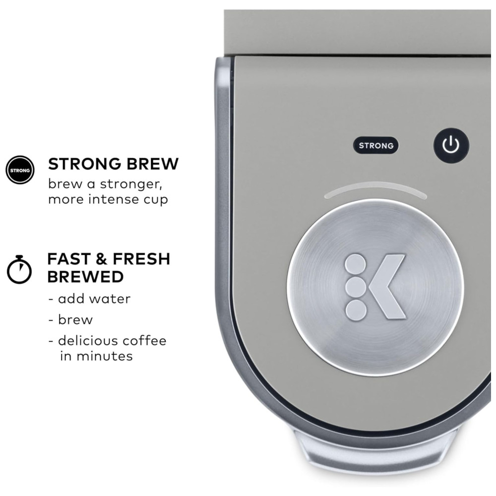 Cor cinza de estúdio. A cafeteira Keurig K Mini Plus apresenta um design elegante é o tamanho perfeito para qualquer espaço ou ocasião. A cafeteira K Mini Plus é fácil de usar sem esforço basta adicionar água fresca ao reservatório removível, colocar sua cápsula K Cup favorita, pressionar o botão de infusão e desfrutar de um café fresco e delicioso em poucos minutos. Escolha entre centenas de deliciosas variedades de vagens da K Cup e desfrute de 6 a 12 xícaras de suas bebidas, café, chá, cacau e gelados favoritos. E para quem gosta de uma bebida mais ousada, selecione o botão Forte para aumentar a força e o sabor arrojado do seu café. Com um reservatório removível de uma única xícara, uma unidade de zenamento de cápsulas para zenar nove de suas cápsulas K Cup favoritas e zenamento de cabos, a cafeteira K Mini Plus é a cervejaria portátil que é perfeita para qualquer café