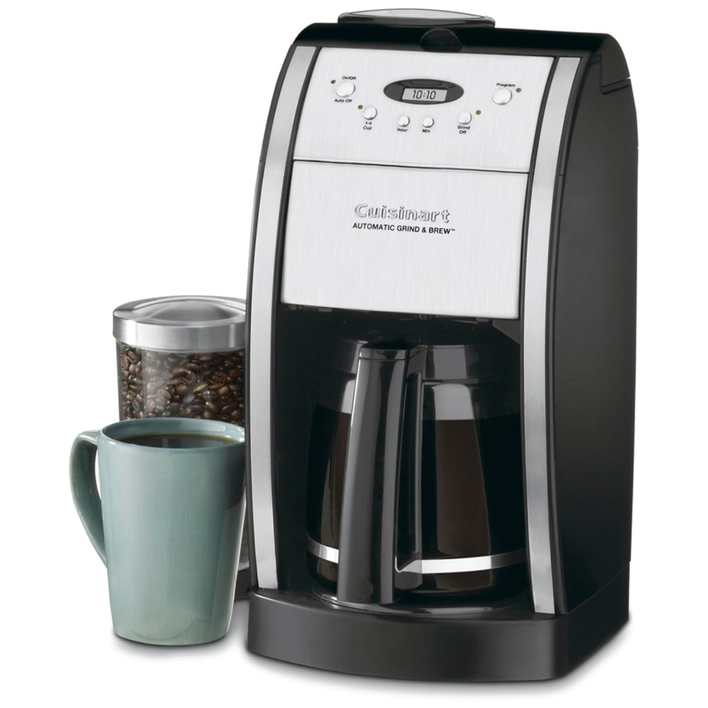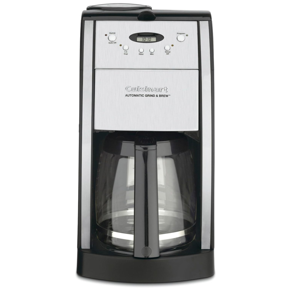 Programabilidade 24 horas com jarra de vidro de 12 xícaras, com alça ergonômica, bico anti gotejamento e proteção para juntas Moe o grão inteiro antes de preparar o café, produzindo café fresco e saboroso. Recurso de moagem para café pré moído Recurso de pausa na fermentação, desligamento automático de 0 a 4 horas e recurso de 1 a 4 xícaras Inclui filtro tom dourado e filtro de água de carvão que remove impurezas Câmara do moedor e área de filtro separadas facilite a limpeza Verifique se o botão de configuração 1 4 está pressionado. Essa configuração faz uma xícara de café mais forte devido ao processo de fermentação mais lento. A câmara do moedor e a área do filtro separadas facilitam a limpeza. Retire o despertador e acorde com o rico aroma de café acabado de moer com a máquina de café Cuisinart Grind Brew Automatic. Uma das séries Premier, este modelo de luxo de 12 xícaras oferece o melhor da tecnologia de cafeteria especialista da Cuisinart para oferecer facilidade de uso inigualável e sabor de café encorpado. Com um estilo europeu simplificado e uma jarra graciosa, é um belo complemento para qualquer cozinha. A cafeteira Grind Brew apresenta um conjunto de moagem separado e uma câmara de filtro para facilitar a adição de grãos e o uso de áreas fáceis de remover. Um conveniente controle de moagem desliga a máquina quando é café pré moído. Uma boa adição a qualquer cozinha moderna, esta cafeteira automática de 12 xícaras mói automaticamente grãos inteiros logo antes da fermentação para produzir um pote de café fresco e saboroso. A unidade totalmente programável por 24 horas permite café despertar, além de sua função de pausa na fermentação simplifica o desfrute de uma xícara de café antes do final do ciclo de fermentação. A jarra de vidro de 1,7 litros incluída oferece uma alça ergonômica, uma proteção para as juntas e um bico de vazamento sem gotejamento para servir com elegância. Outros destaques incluem desligamento automático ajustável por até quatro horas, uma opção de retificação, um filtro de água de carvão para remover impurezas e uma câmara de retificação e uma área de filtro separadas para garantir uma limpeza simples. Instalada em um elegante estilo italiano. Um filtro de água a carvão e um filtro de café de tom dourado permanente, de estilo , permitem que apenas o sabor puro flua, e o popular recurso de pausa na fermentação permite que você espreite uma xícara antes do término do ciclo. Peças laváveis na máquina de lavar louça. Moagem separada e câmaras de filtro para limpeza fácil. O café mais fresco do lado de fora de uma cafeteria. O que mais um amante de café poderia ter Tampa do reservatório. Vira para trás para facilitar o enchimento, Removível para facilitar a limpeza. Um sistema de intertravamento de segurança impede a operação da unidade se a tampa do reservatório estiver aberta. Distribui a água uniformemente sobre o café, reduzindo a perda de temperatura à medida que a água passa pelo solo. Compartimento do cesto do filtro. Contém o cesto do filtro, a tampa do cesto do filtro e o filtro de estilo Cuisinart, em tom de ouro. Pausa de fermentação Interrompe o fluxo de café da cesta quando a jarra é removida da placa de aquecimento para que um copo possa ser derramado no meio da fermentação, se desejado Placa de aquecimento Resistente a arranhões com revestimento antiaderente. A jarra de 12 xícaras, fácil de lavar e sem gotejamento, possui uma alça ergonômica e marcas de café para duas a doze xícaras Medição de colher e pincel 4. Filtros de papel de cesta
