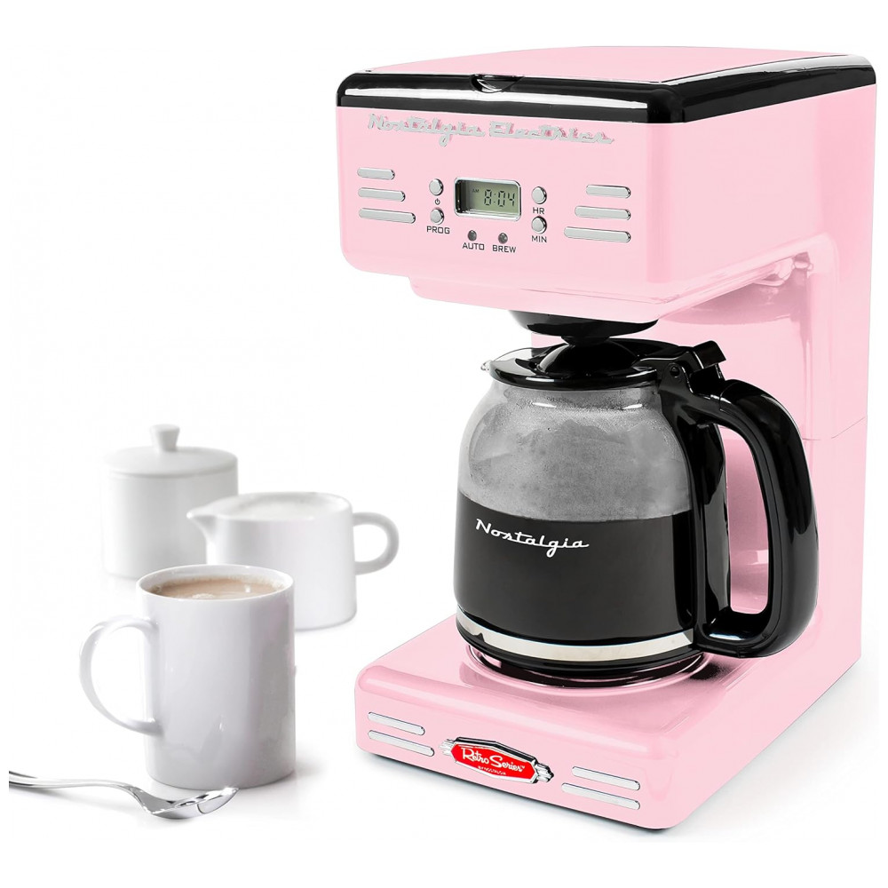 Cafeteira Elétrica 12 Xícaras Nostalgia Retro Rosa Display LED Programável Função Pausa Desligamento Automático 1000W 110V