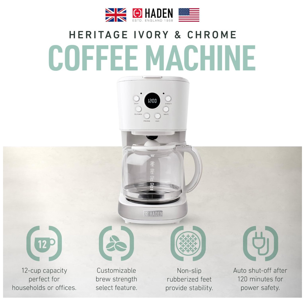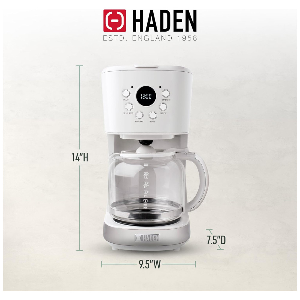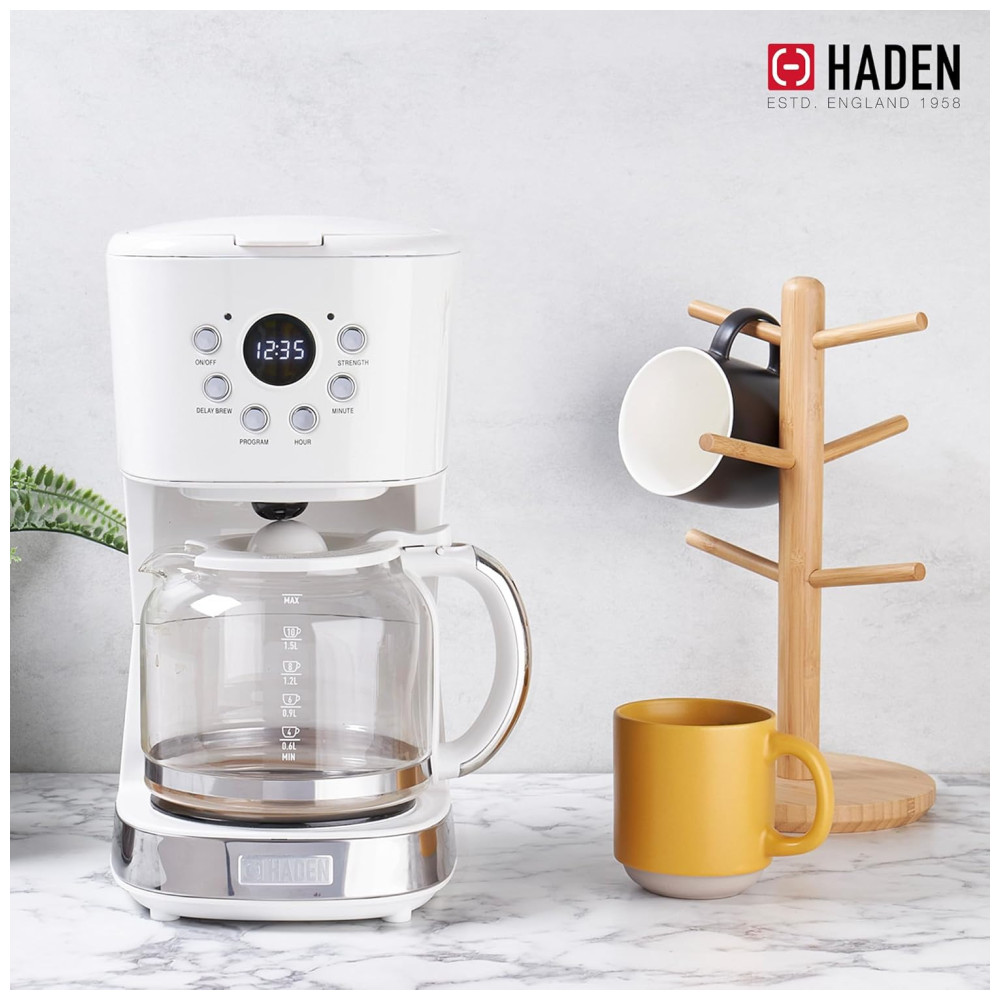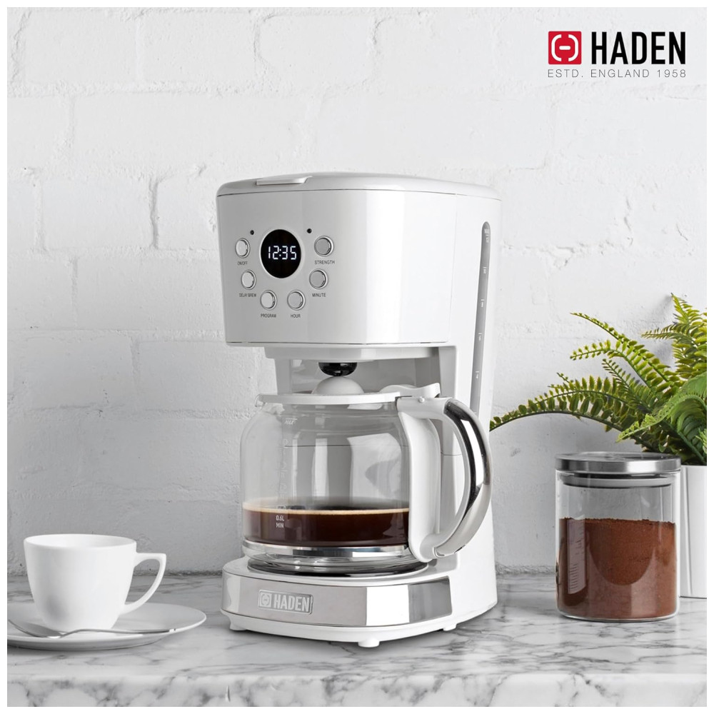 Cafeteira Elétrica Programável Retro Capacidade 1.5L Aço Inox Branca 110v HADEN 75061 Branco