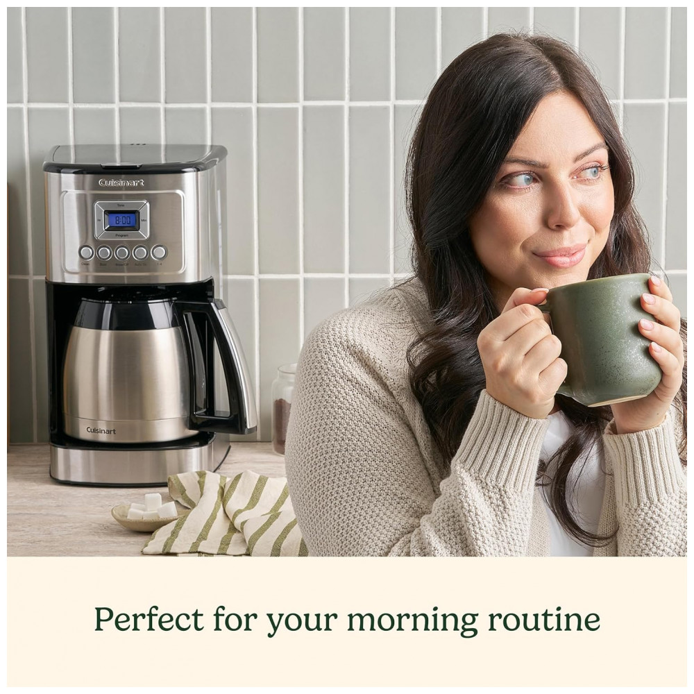 Café mais quente, com tecnologia de fabricação de café especializada para garantir uma temperatura mais quente do café sem acrificar o sabor ou a qualidade. Dimensões 23x 20x 36cm. Comprimento do cabo 90cm O controle da intensidade da infusão permite selecionar o sabor regular ou o do café Totalmente automático com programação de 24 horas, auto limpeza, configuração de 1 a 4 xícaras, desligamento automático e tom de alerta pronto opcional 12 xícaras térmicas a jarra com alça decorativa de aço inoxidável janela de água de fácil visualização para um preenchimento preciso. O segundo reajuste recupera as configurações e a posição no processo de fabricação de cerveja em caso de perda de energia. você desfruta de uma xícara de café antes que o ciclo de preparação termine Café mais quente e opções de fermentação o melhor dos dois mundos A cafeteira térmica programável Cuisinart de 12 xícaras está equipada com a tecnologia de ponta do café para oferecer café mais quente sem sacrificar o sabor. Escolha um perfil de sabor Le com controle de força regular ou o e defina o tempo de fermentação até 24 horas à frente. Nosso LCD retroiluminado é fácil de ler, um tom pronto pode ser ligado ou desligado e uma luz indicadora