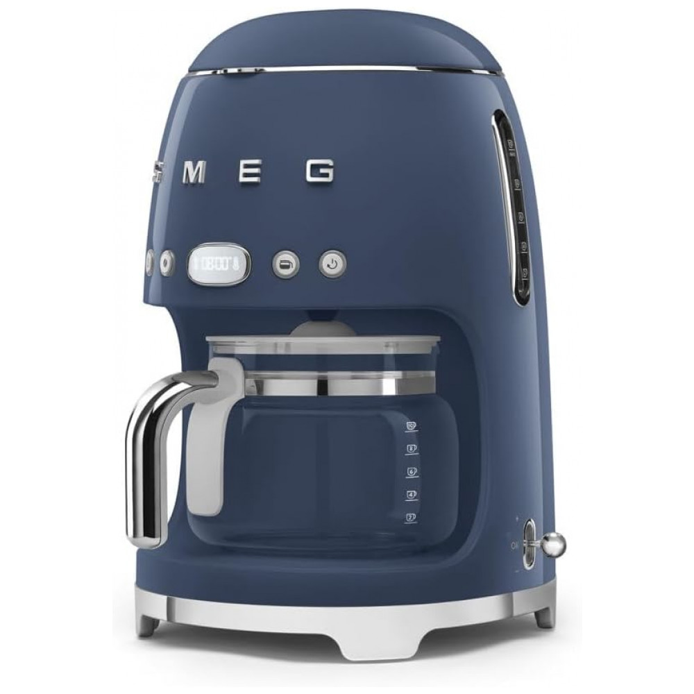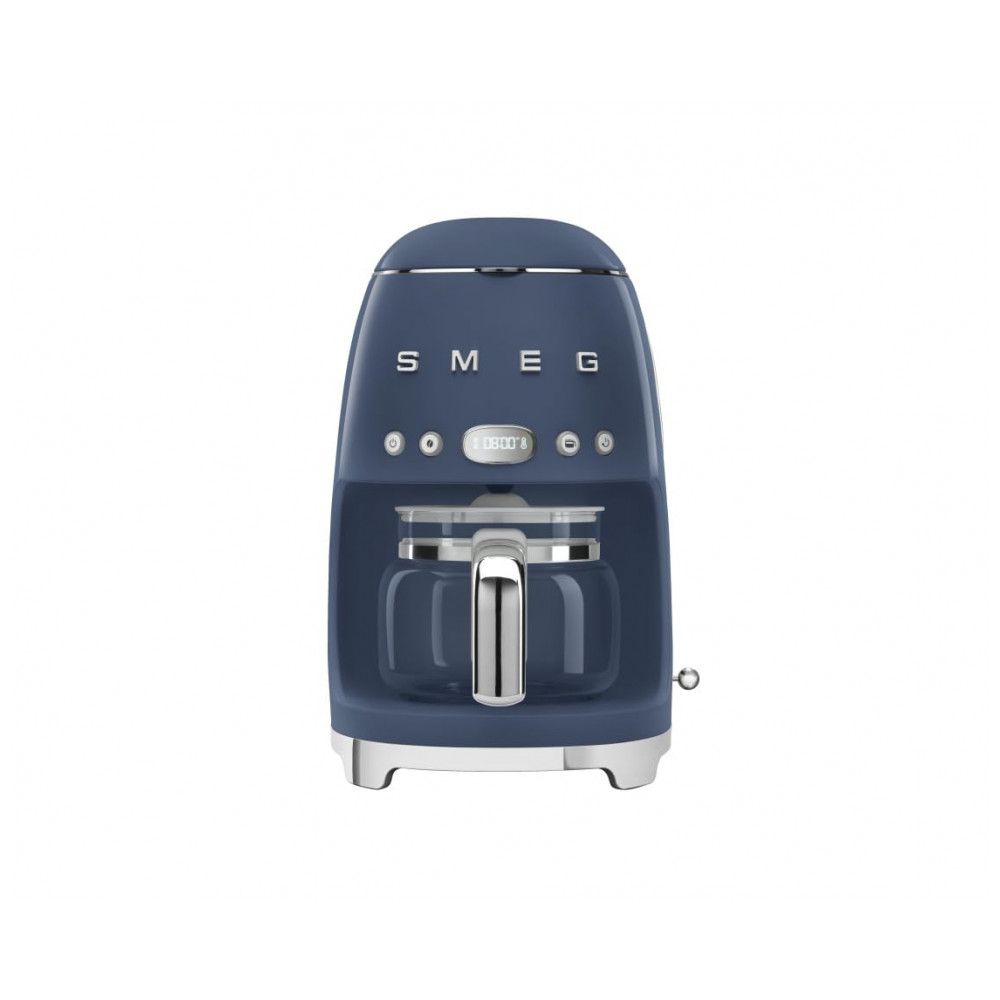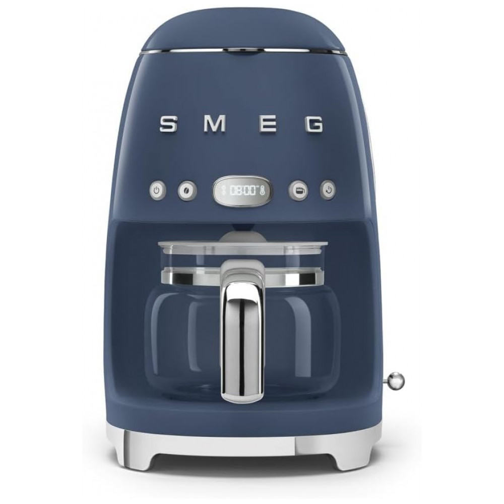Cafeteira elétrica Smeg retrô azul marinho com jarra de vidro 10 xícaras programação automática controle de aroma e placa de aquecimento 60 min 110V