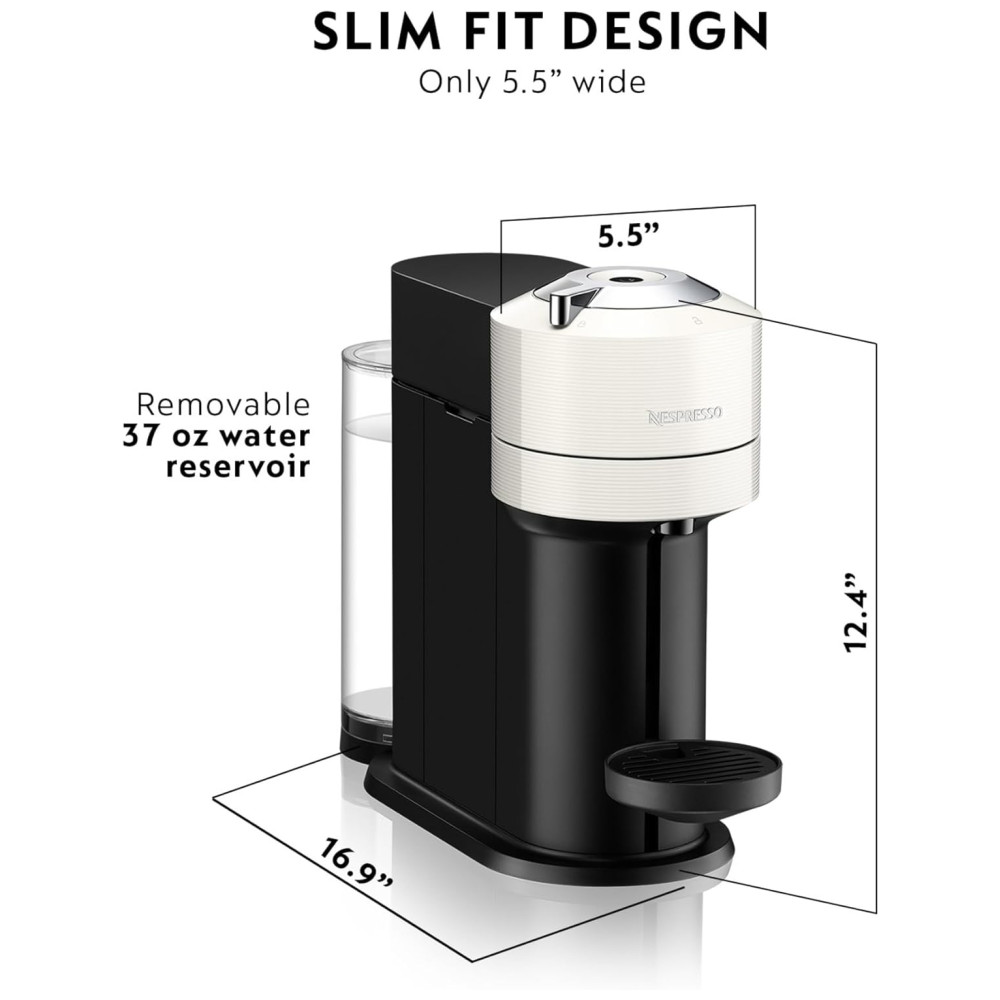 DESIGN DE QUALIDADE a mais recente inovação da Nespresso, a Vertuo Next é a máquina de café individual Vertuo mais compacta, sustentável e inteligente até hoje. É feito de 54 de materiais reciclados e tem apenas de largura. Ele também vem com um tanque de água removível