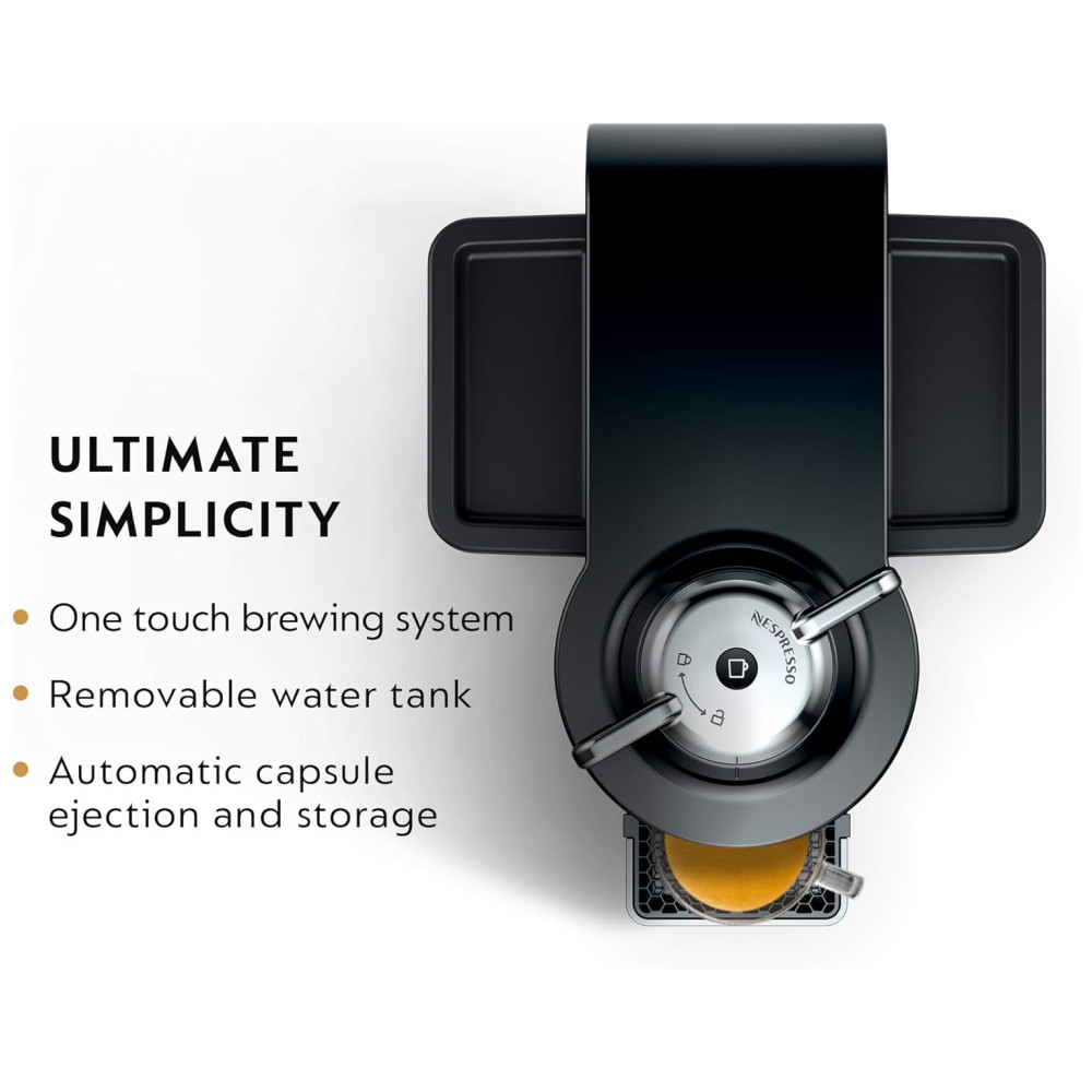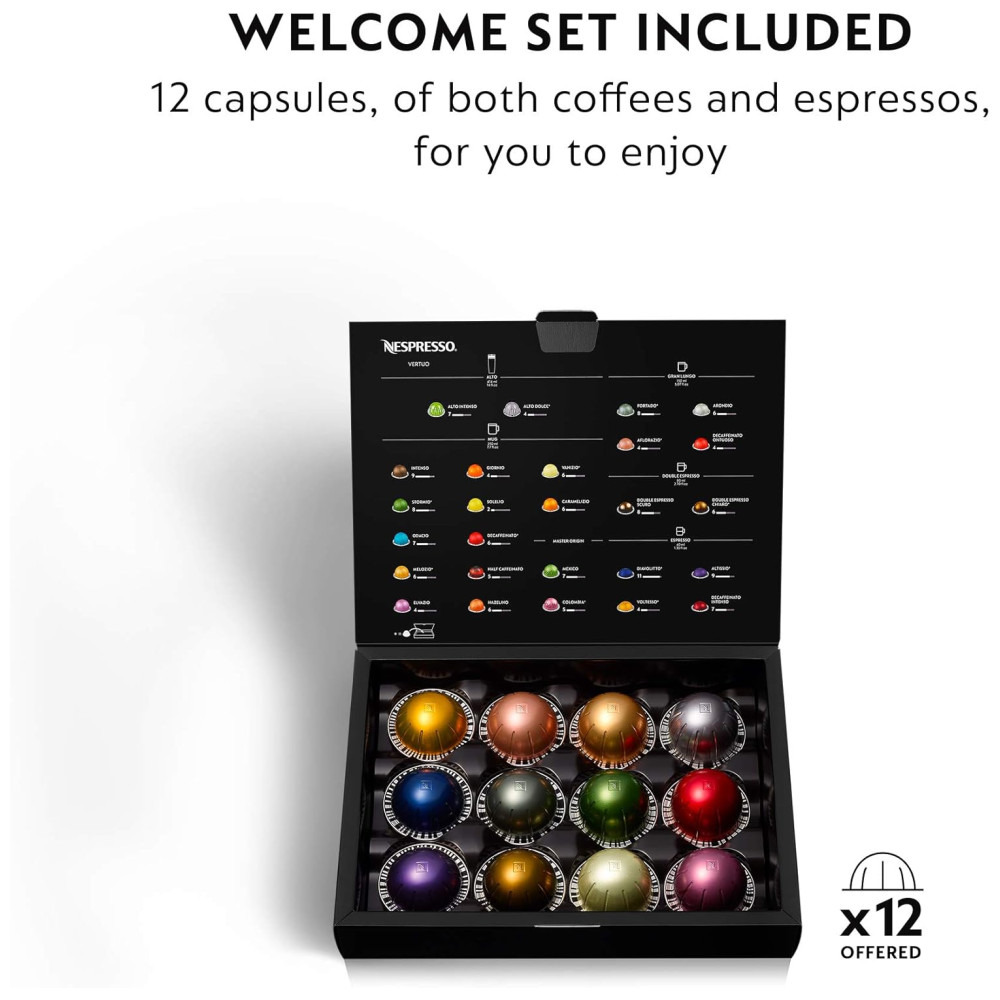 A Nespresso está em constante evolução na forma como você bebe café expresso e café. Oferecendo café acabado de fazer com creme, bem como um café expresso delicioso e autêntico. Quatro opções recém preparadas graças às tecnologias revolucionárias de centrifusão e leitura de código de barras café expresso de 39 mL, Gran Lungo de 147 mL, café de 236 mL e Alto de 414 mL com o toque de um botão. Ele usa dois tamanhos de cápsulas diferentes cápsula grande para café e uma pequena para expresso. As cafeteiras Vertuo fornecem uma xícara de café perfeita vez após vez, graças à Centrifusion. Vertuo usa um sistema de extração inteligente que reconhece cada mistura de Grand Cru. Graças a um código de barras na borda da cápsula, os parâmetros de preparo são ajustados pela máquina, sem a necessidade de alterar configurações. Isso oferece o melhor resultado na xícara para a variedade escolhida com o toque de um único botão. A cápsula é ejetada automaticamente após a infusão, com apenas 15 20 segundos de tempo de pré aquecimento, enquanto a função automática de economia de energia desliga a máquina após 9 minutos de inatividade, consumindo menos energia. Cada máquina inclui um conjunto de boas vindas gratuito com uma variedade de cápsulas Nespresso Vertuo com perfis de aroma exclusivos