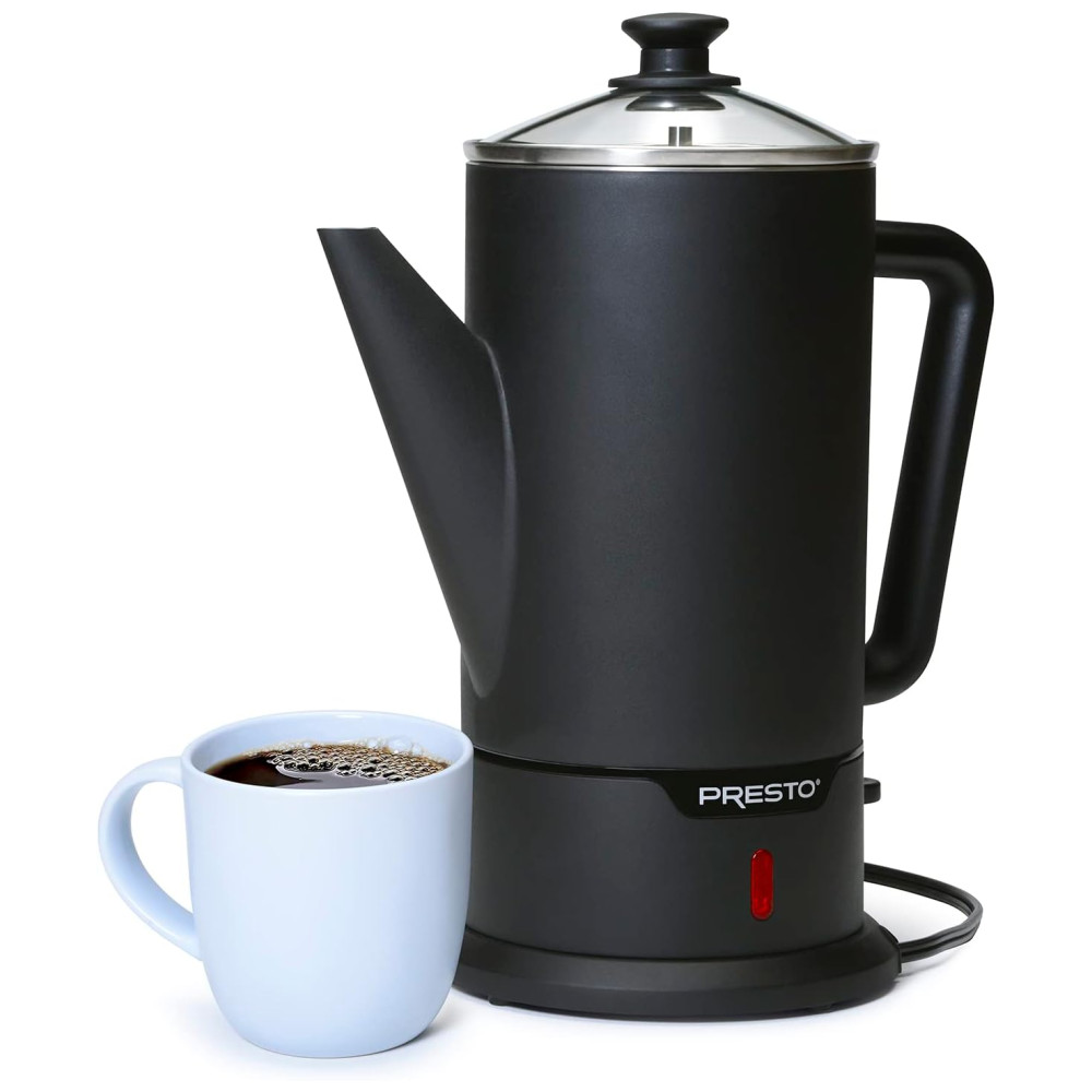 Cafeteira em Aço Inoxidável com Capacidade para 12 Xícaras Design Moderno e Alça que Permanece Fria Presto 02815 Preto Fosco