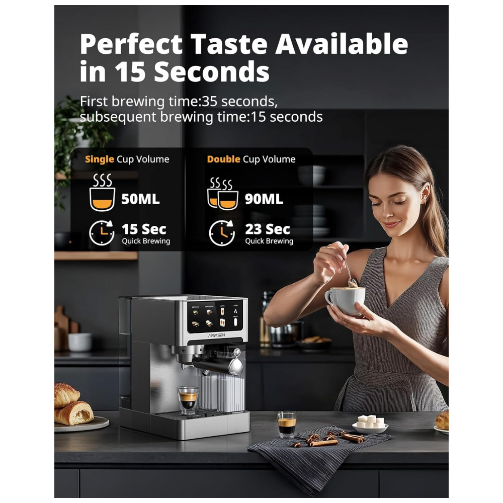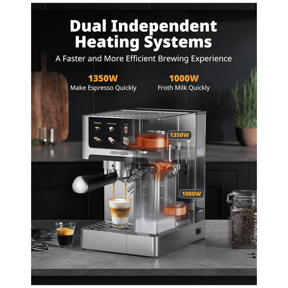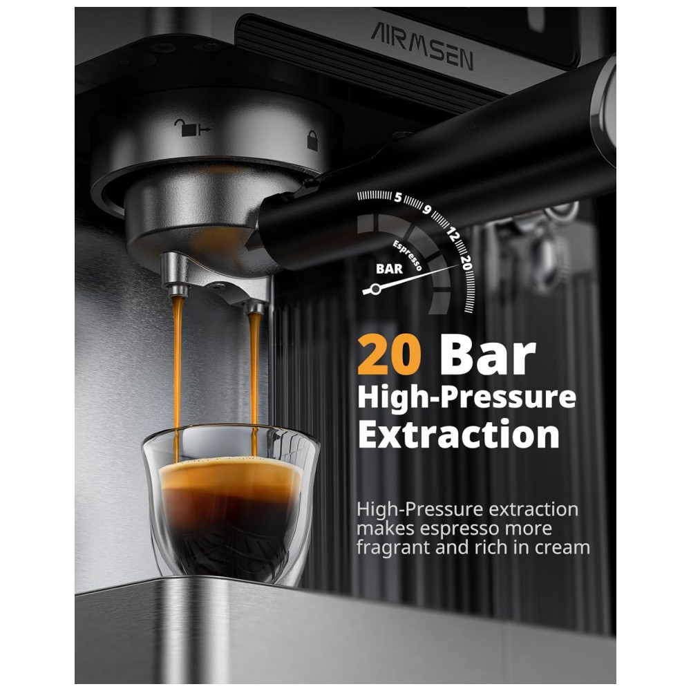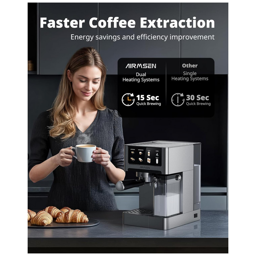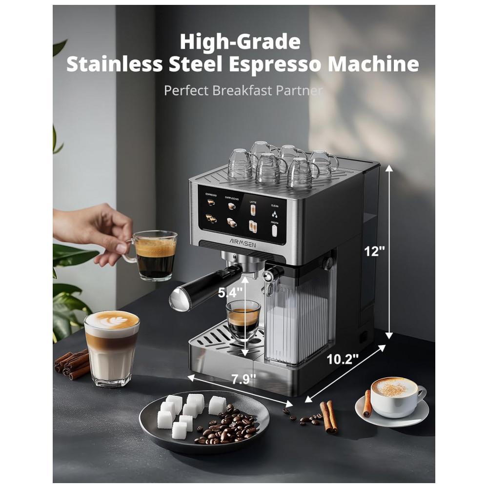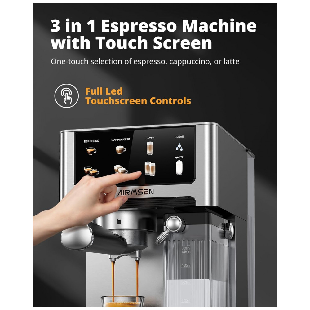 Cafeteira Espresso AIRMSEN Prata 18L 20 Bar com Espumador Automático Dual Boiler Touchscreen 2350W 110V