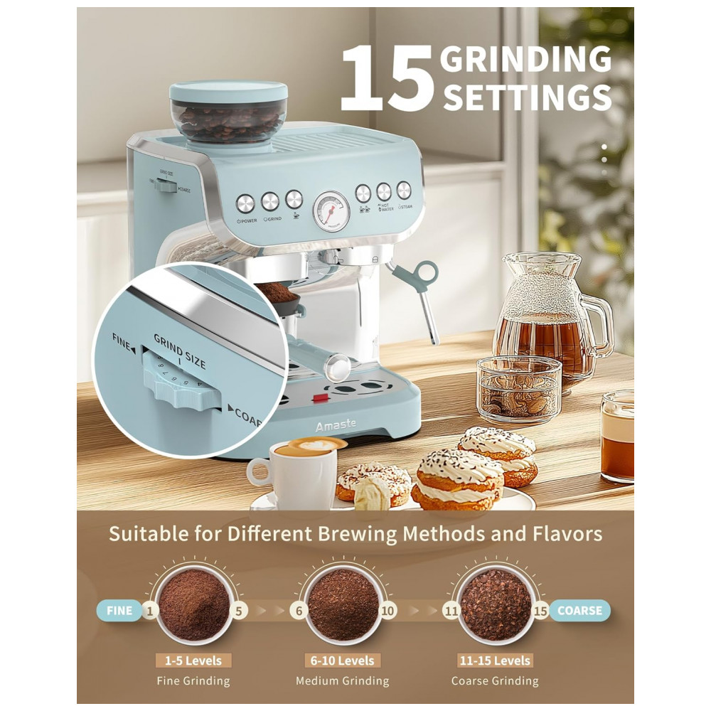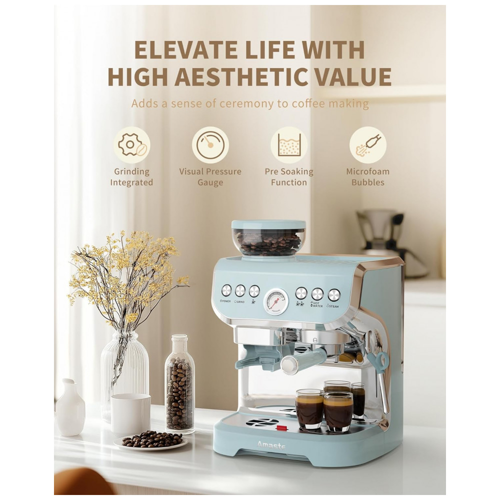 Cafeteira Espresso Amaste 15 Bar com Moinho Integrado Vaporizador 2L Azul Kit Barista Pre-Infusão AC-517EA 110V