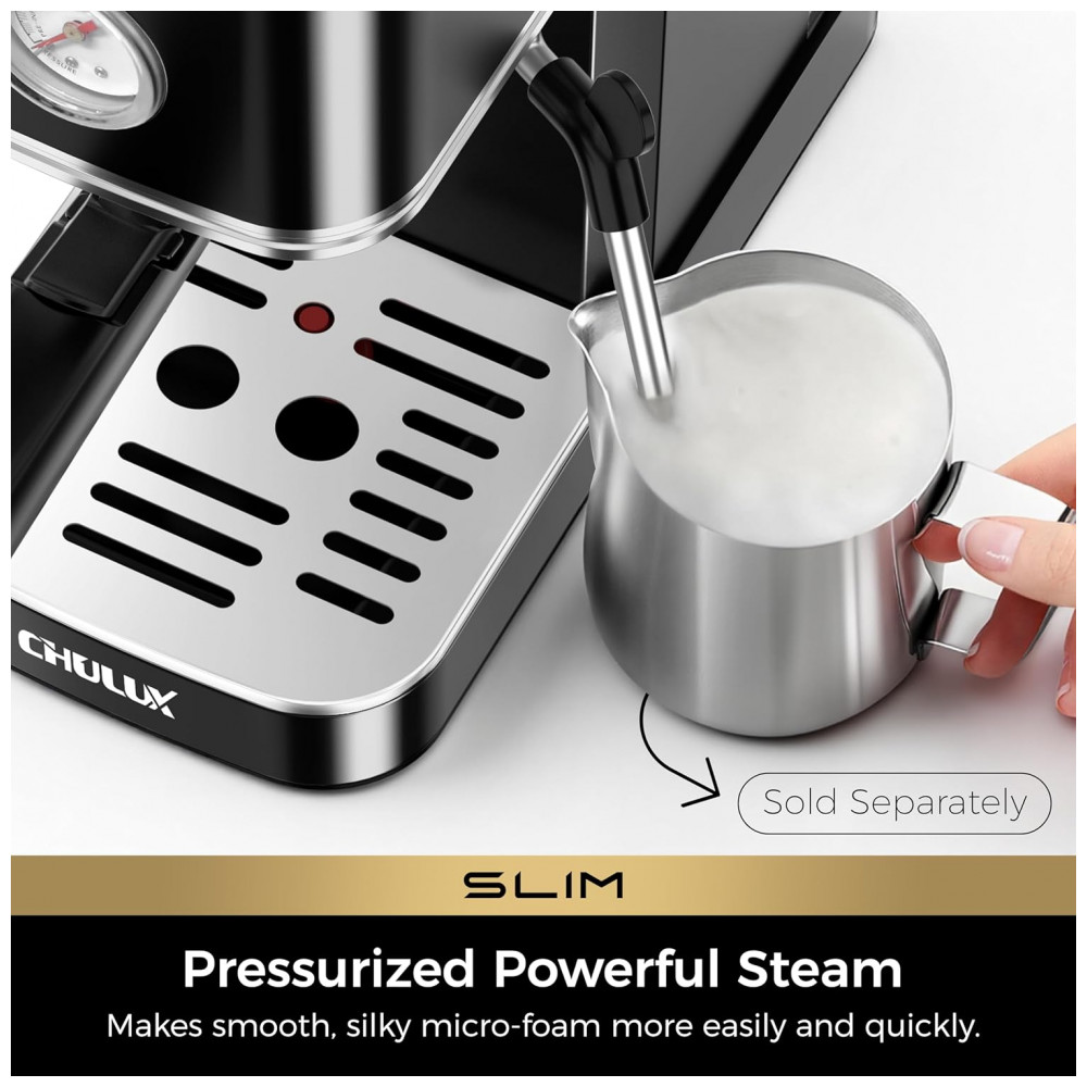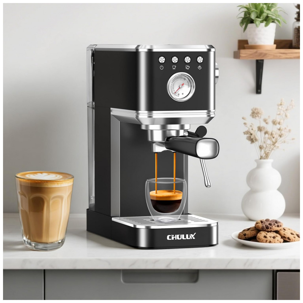 Cafeteira Espresso CHULUX Slim Automática 20 Bar Vaporizador de Leite 118L Bomba Italiana Aço Inox Aquecimento Rápido 110V – Preta