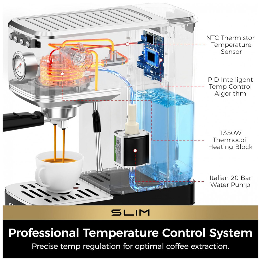 A Cafeteira Espresso CHULUX Slim foi projetada para amantes de café exigentes que buscam alta performance em casa ou no escritório. Equipada com bomba italiana profissional de 20 Bar e potência de 1350W, garante extração intensa, crema espessa e aroma marcante. O sistema de aquecimento rápido inicia em apenas 30 segundos e prepara cafés entre 1 a 3 minutos.