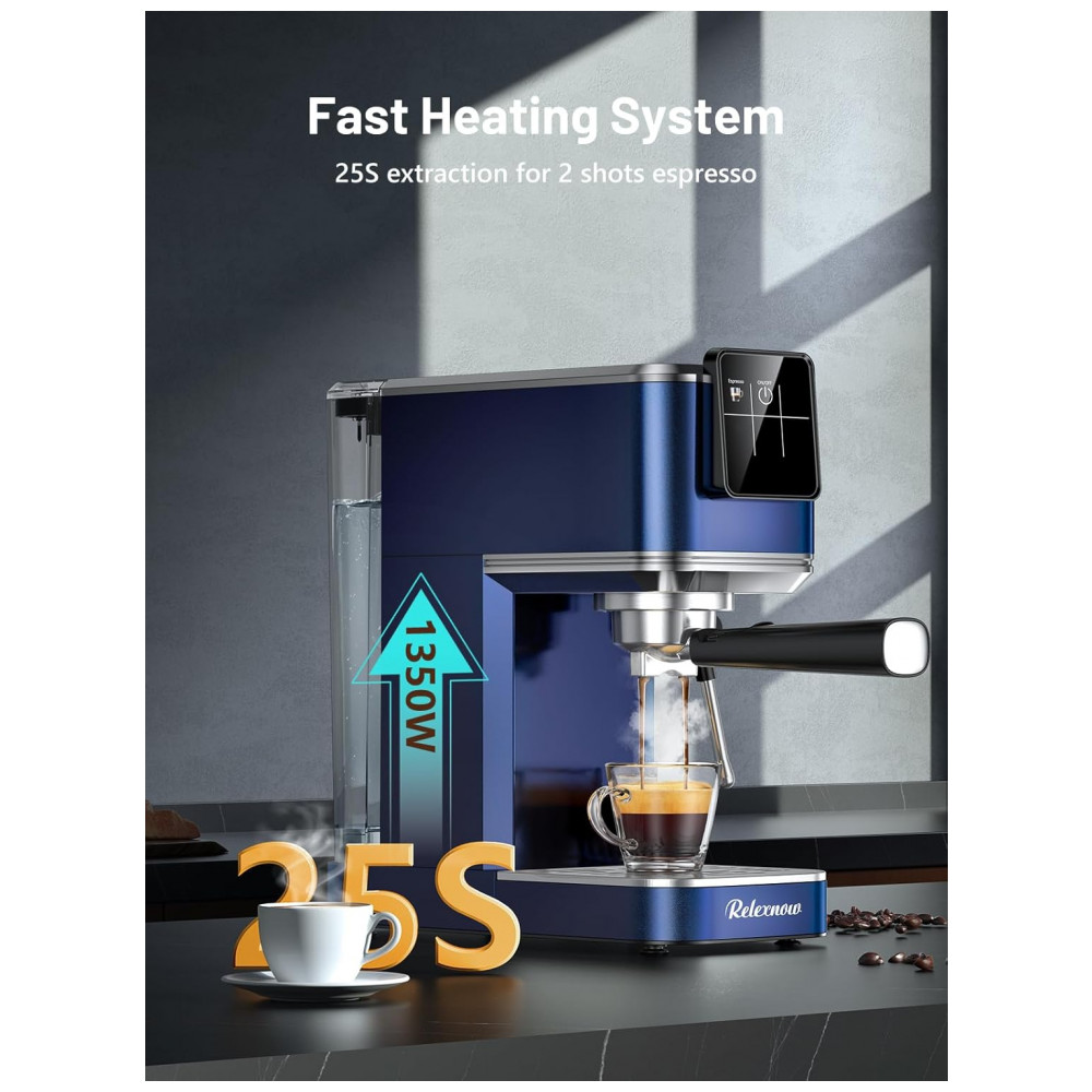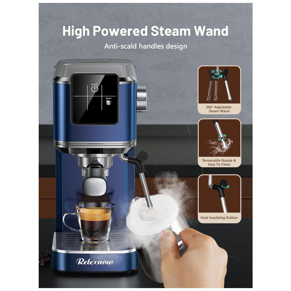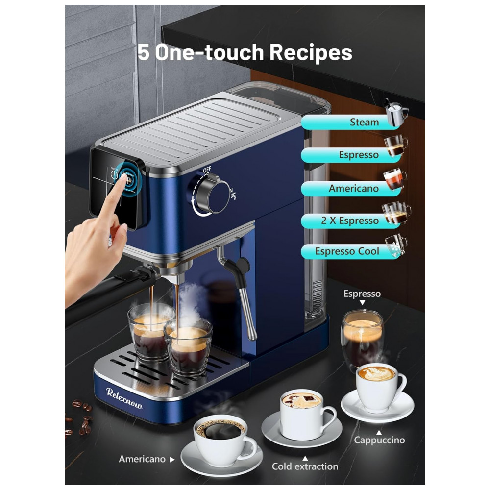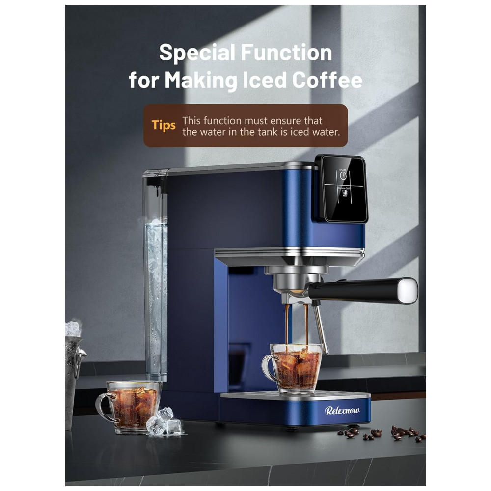 Cafeteira Espresso RELEXNOW Azul 20 Bar LCD 12L Vaporizador de Leite Café Quente e Gelado 110V