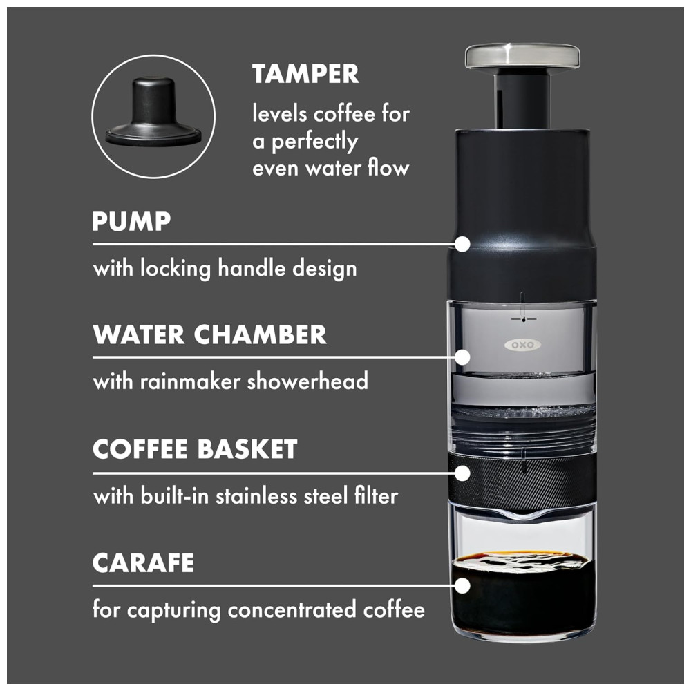 Cafeteira Portátil Manual de Pressão para Café Fresco Rápido OXO Preta