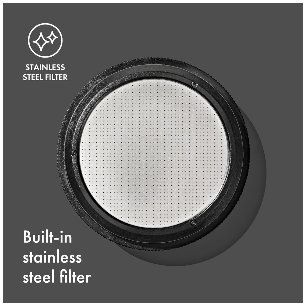 Com o OXO Rapid Brewer, você pode desfrutar de um café rico e concentrado em minutos, sem a necessidade de esperar em filas ou depender de um barista. Este produto compacto e leve cabe facilmente em sua mochila ou bolsa, permitindo que você crie sua xícara perfeita em casa, no escritório, no hotel ou em qualquer lugar. Com um filtro de aço inoxidável integrado e um tamper para nivelar o leito de café, o Rapid Brewer garante uma extração uniforme do sabor. Adicione café moído fino na linha de enchimento, aperte firmemente, adicione água na linha de enchimento e espere dois minutos para um café concentrado quente, cinco minutos para um café frio suave e com baixa acidez. Em seguida, destrave a bomba girando a um quarto de volta e bombeie o café concentrado para a jarra. Você pode ajustar a quantidade de pó de café que usa, o volume de água e a temperatura para produzir um café concentrado que é exatamente o sabor que você ama. Além disso, a cafeteira é fácil de limpar, tudo, exceto a bomba, pode ser lavado na máquina de lavar louça. A câmara de água e a garrafa são feitas de Tritan Renew, 50 de conteúdo reciclado certificado por meio de um processo de alocação de balanço de massa. Com o chuveiro Rainmaker, a água é distribuída uniformemente por todo o leito de café, garantindo a extração máxima de sabor. Com o OXO Rapid Brewer, as possibilidades de preparar diferentes bebidas de café são ilimitadas.
