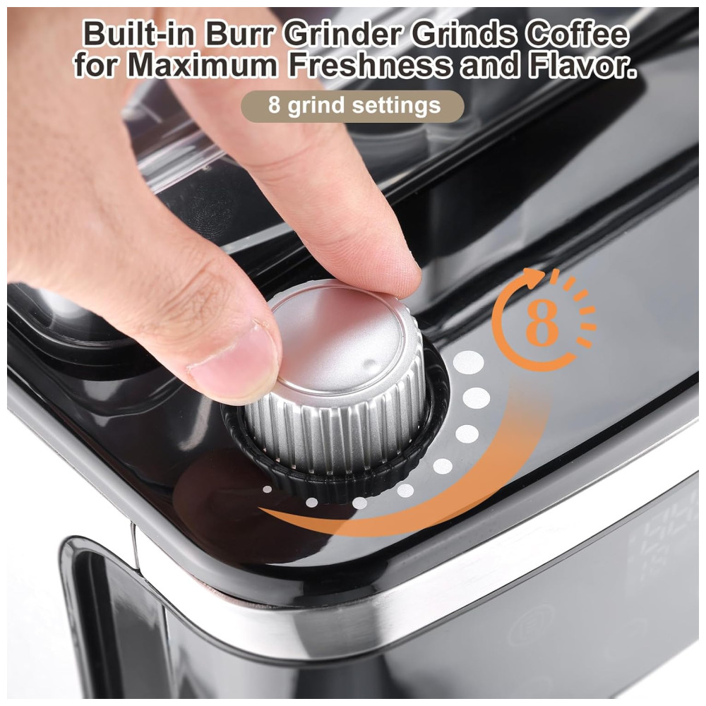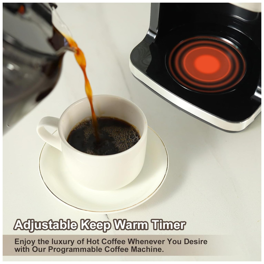 A cafeteira Homtone de 10 xícaras com moedor de rebarbas integrado oferece uma experiência de preparo personalizável, permitindo que você ajuste a intensidade e o sabor do café de suave a forte. Com opções versáteis de preparo, você pode escolher entre grãos inteiros moídos na hora ou café pré moído. Além disso, a cafeteira possui um temporizador programável para que você possa acordar com o aroma do café fresco preparado na hora. O moedor de rebarbas integrado permite que você ajuste o tamanho da moagem, proporcionando extração ideal e uma experiência de café personalizada. Com um reservatório de água generoso de 1,5 L, a cafeteira Homtone pode preparar até 10 xícaras de café delicioso, tornando se uma escolha perfeita para compartilhar com a família e amigos em reuniões e entretenimento.