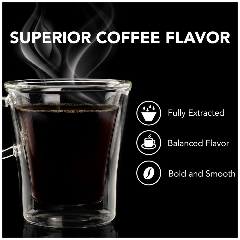 Distribuição de Água Superior: O cabeçote de pulverização giratório patenteado garante uma extração uniforme e completa do café, proporcionando um sabor rico e equilibrado sem amargor.