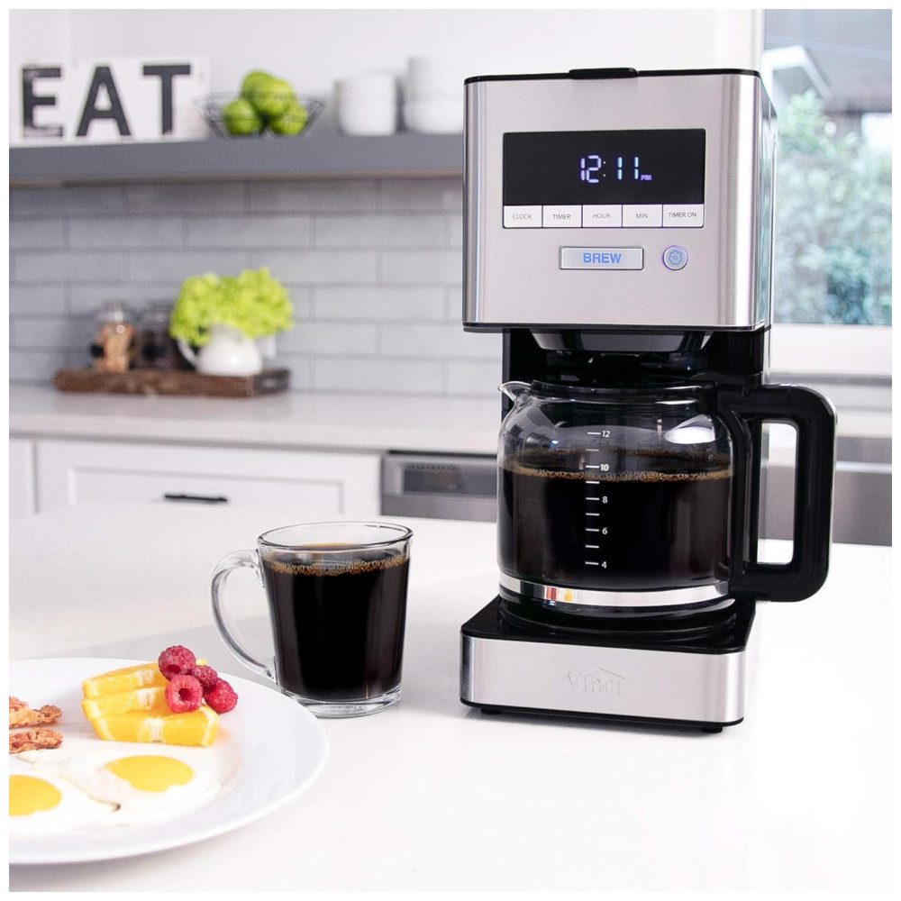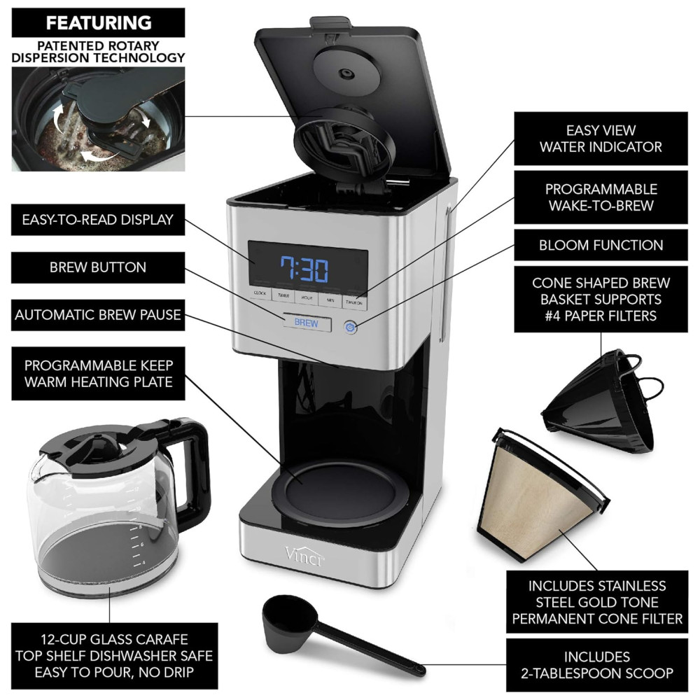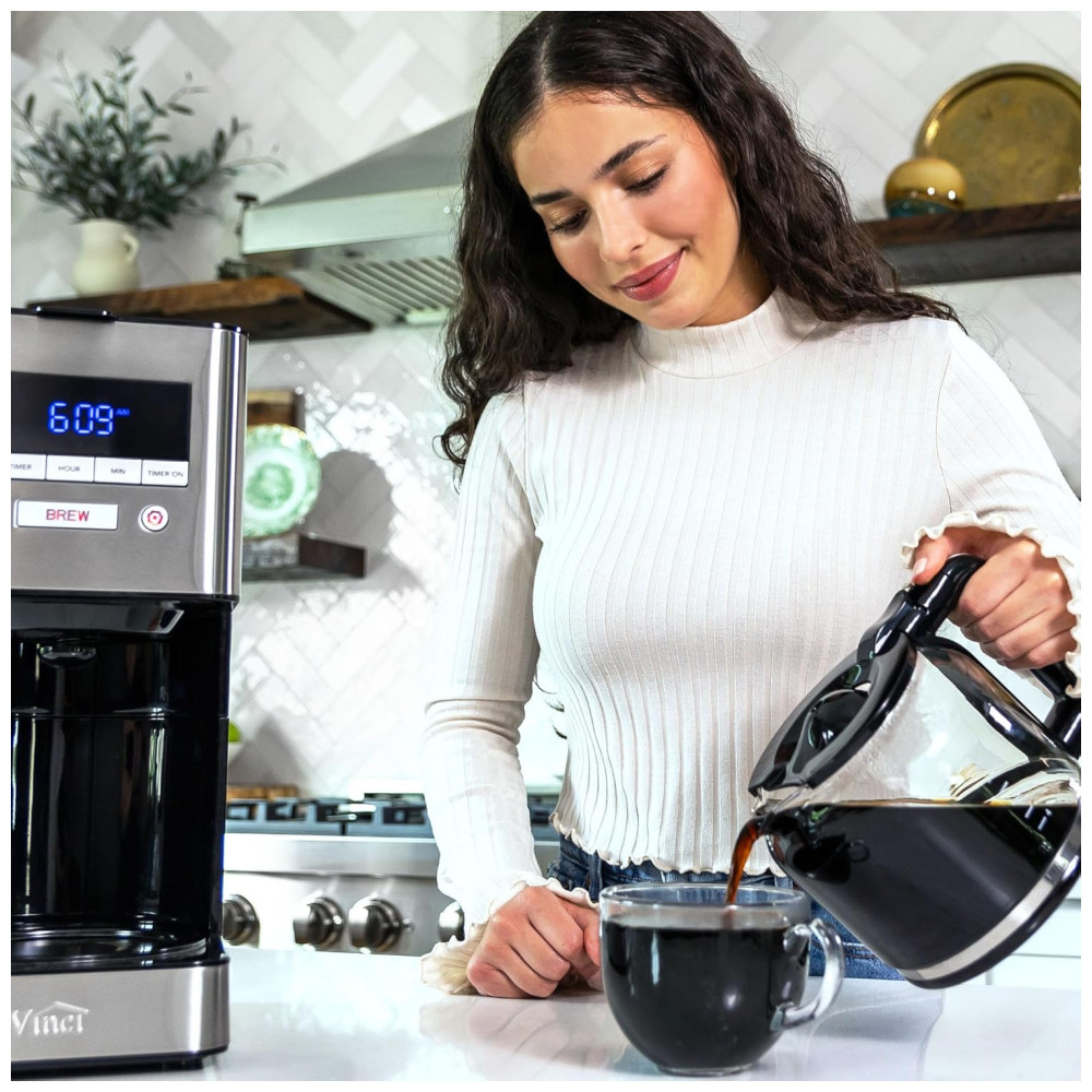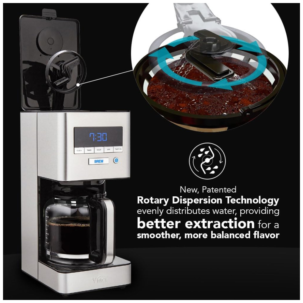 Cafeteira Programável 12 Xícaras com Função Bloom e Tecnologia de Dispersão Rotativa 110V 1050W Vinci Prata