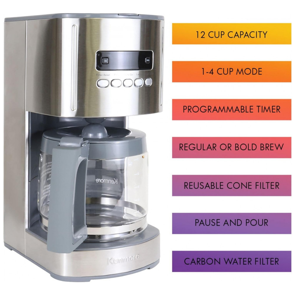 Cafeteira Programável 12 xícaras em Aço Inoxidável 110V 1000W Kenmore Prata