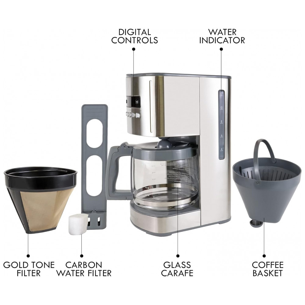 Conveniência programável defina o cronômetro na noite anterior, usando os controles digitais simples e o visor LCD nítido, e acorde com o delicioso aroma de café acabado de fazer.