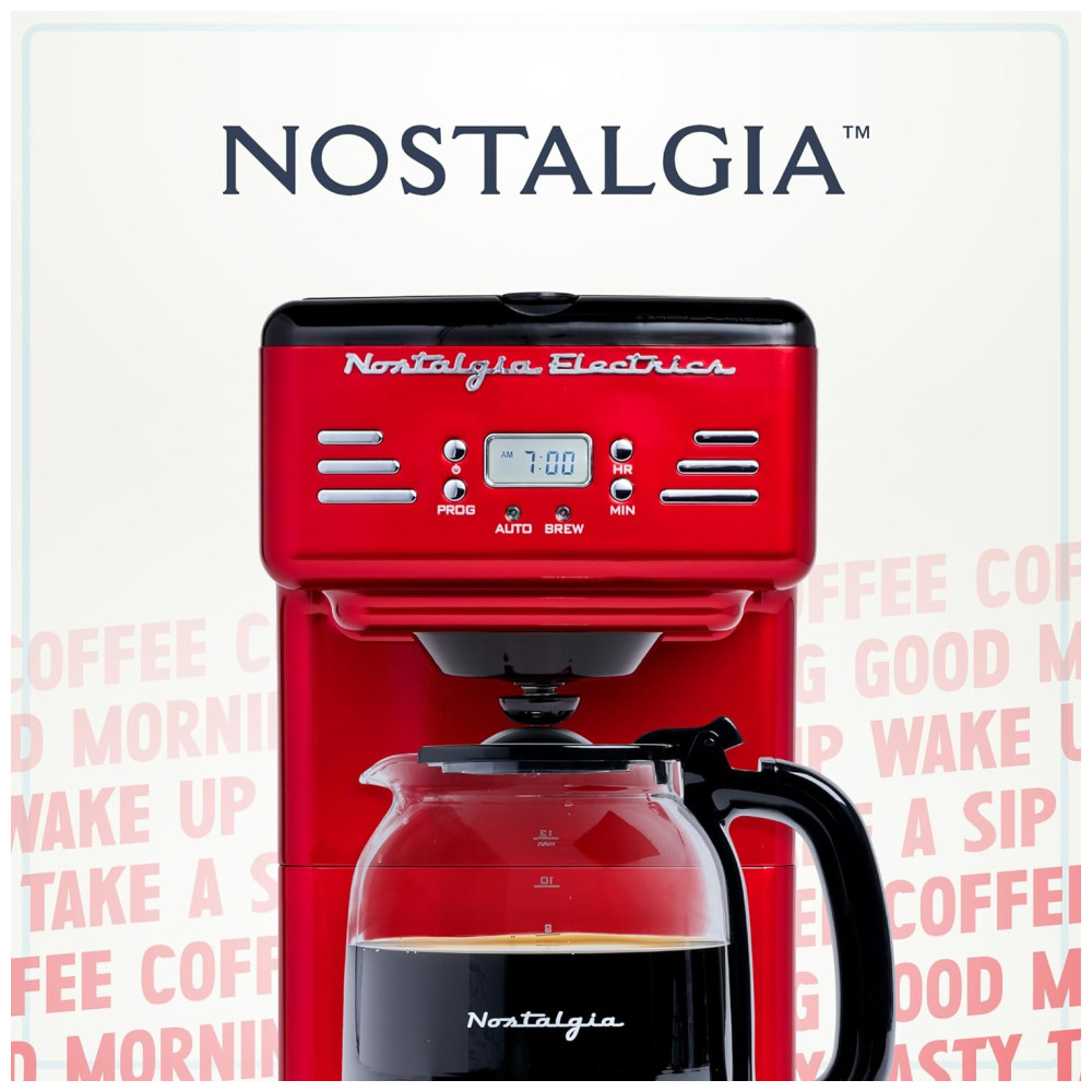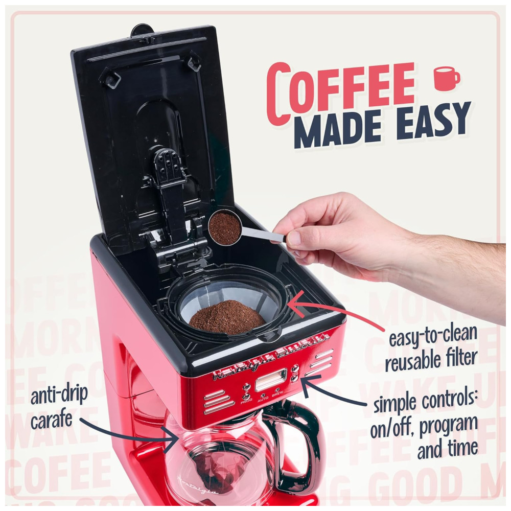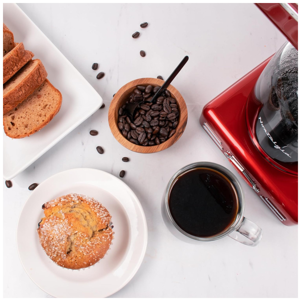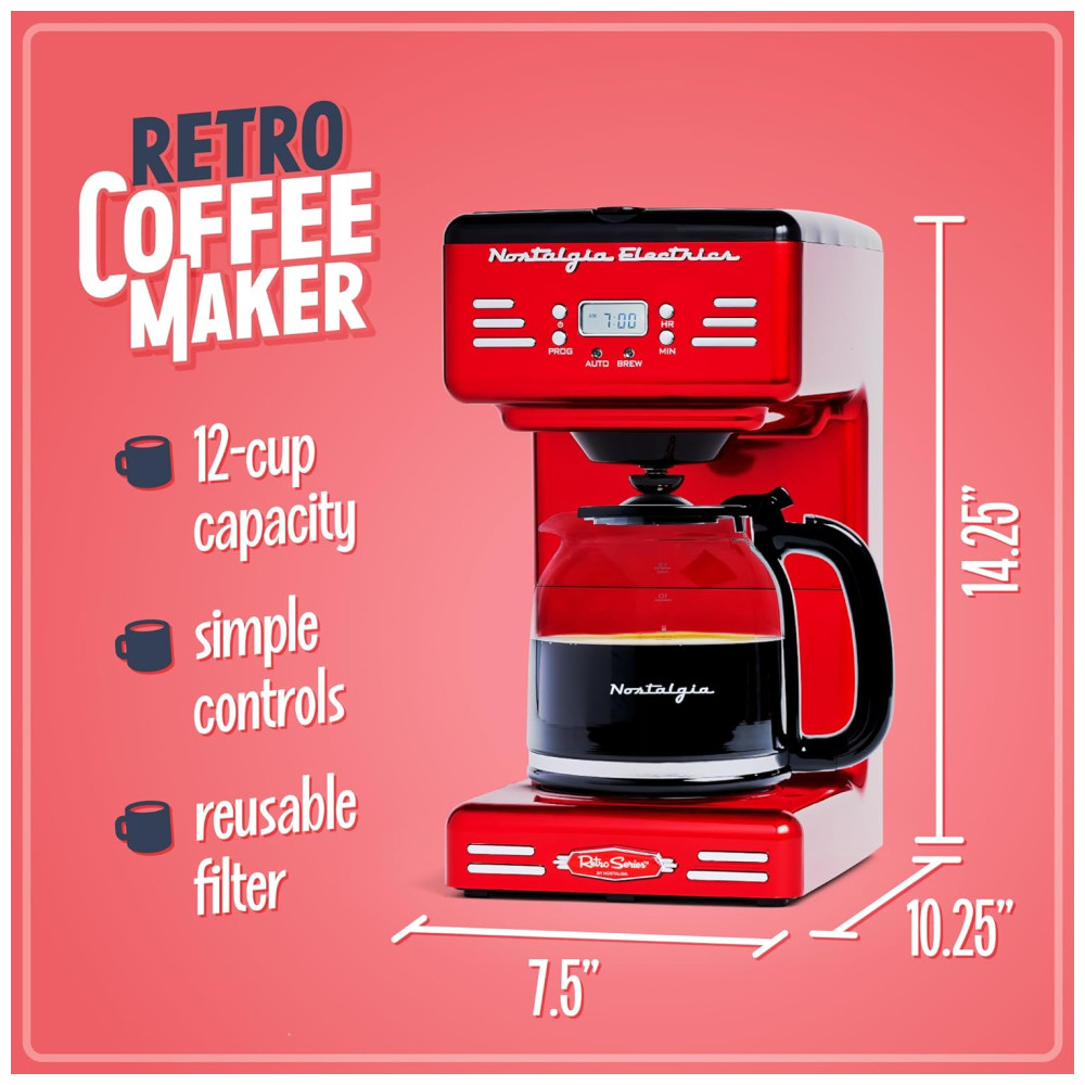 Cafeteira Elétrica 12 Xícaras Nostalgia Retro Vermelha Display LED Programável Função Pausa Desligamento Automático 1000W 110V