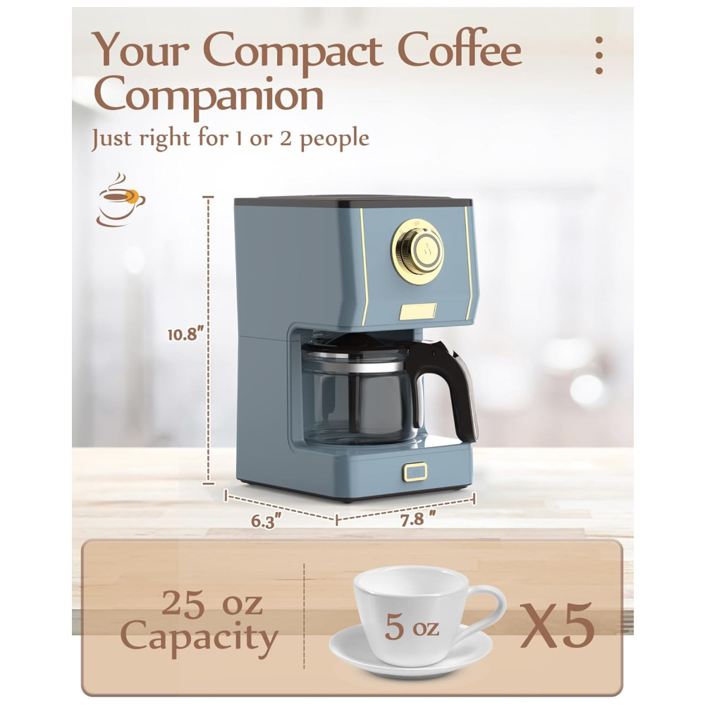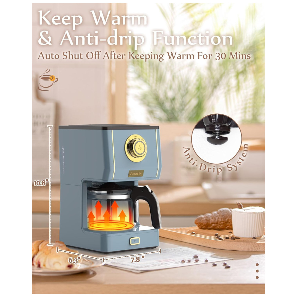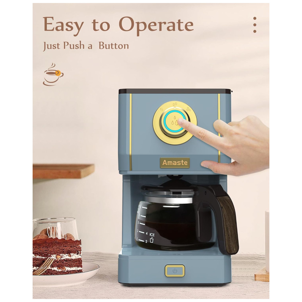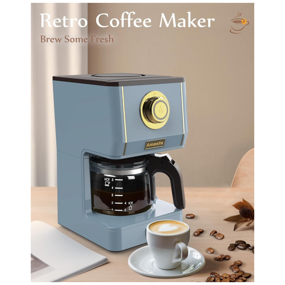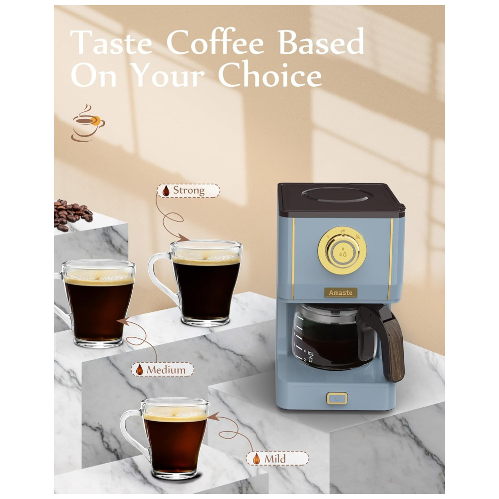 Cafeteira Retrô com 3 Modos de Preparo Jarra de Vidro e Filtro Reutilizável 110V 600W Amaste Azul