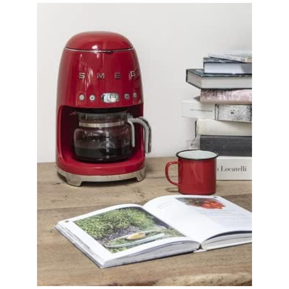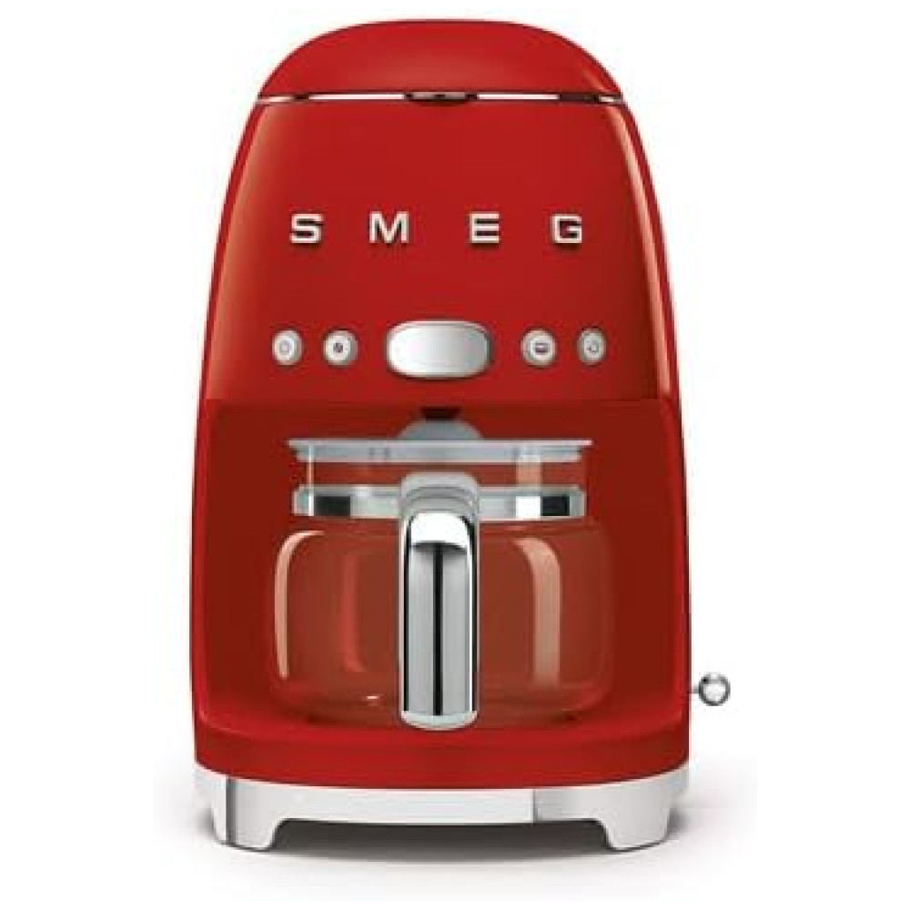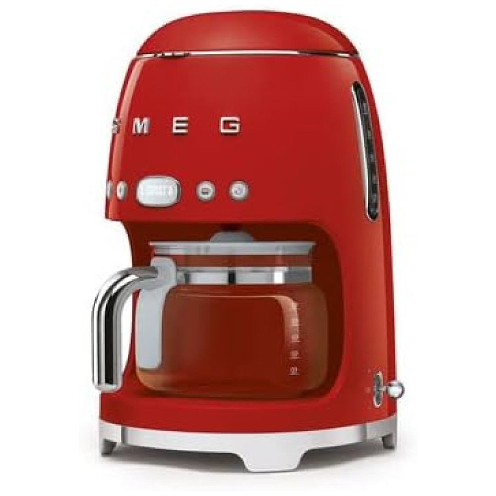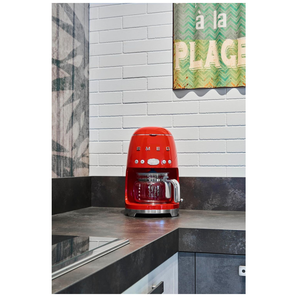 Cafeteira SMEG DCF02 – 10 Xícaras Programação Automática Manter Quente Design Retrô 1950 Vermelha Jarra Vidro Extra DCFC01
