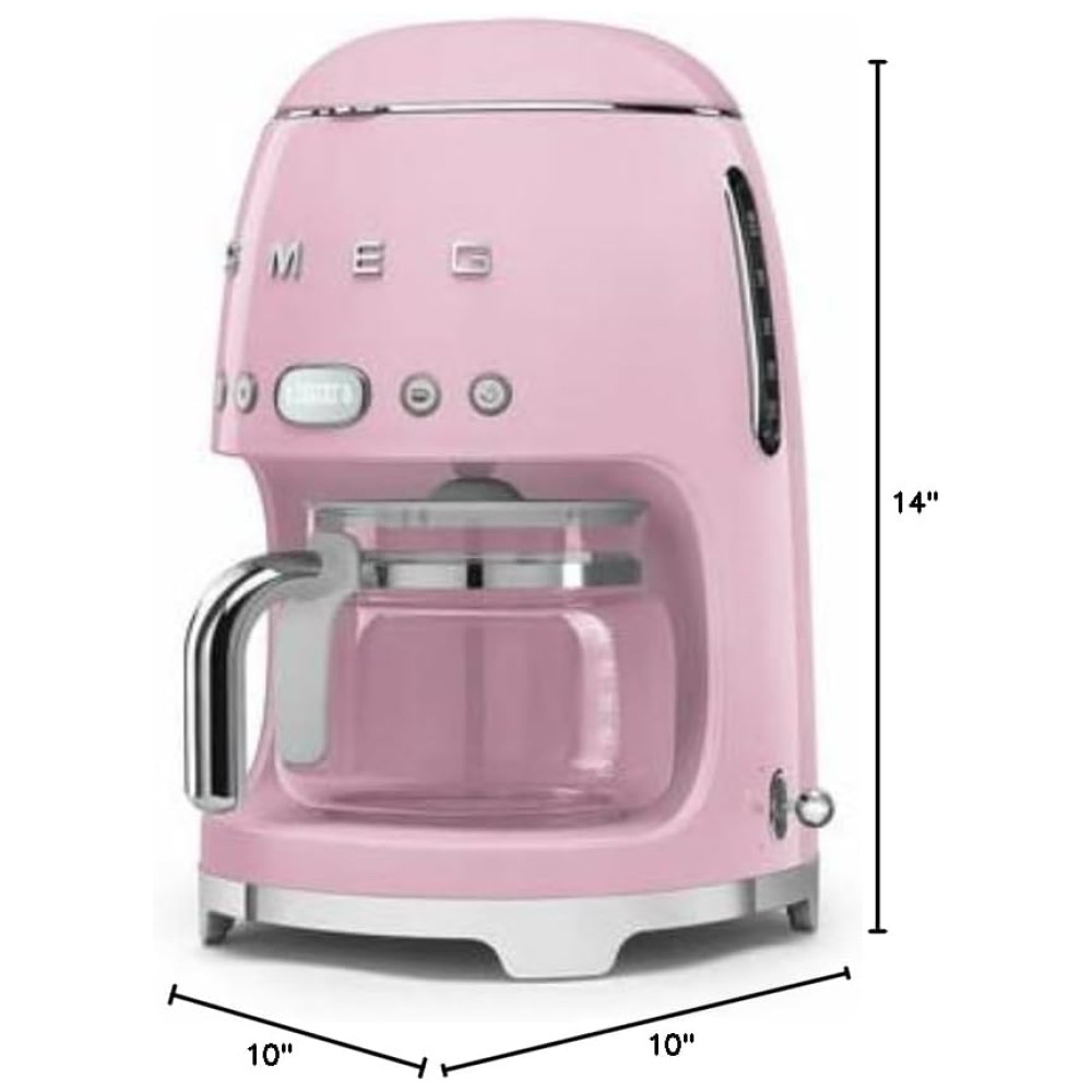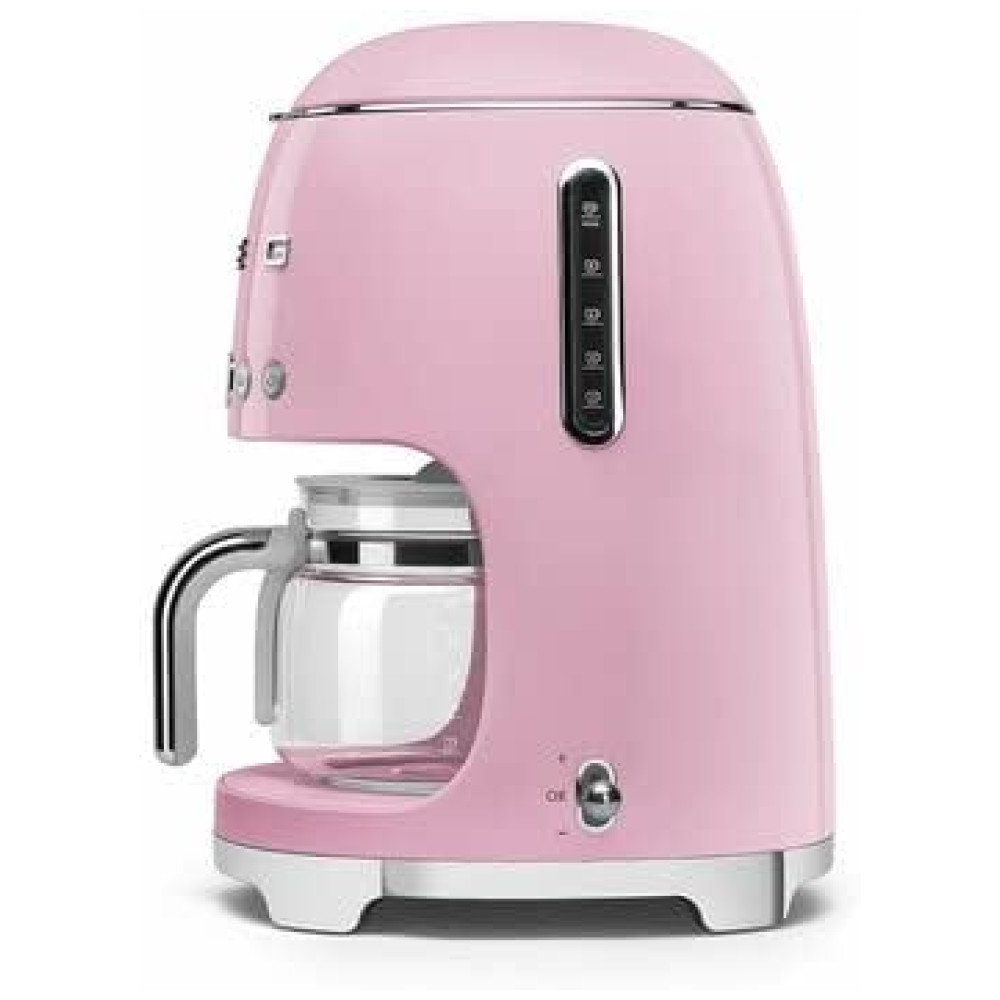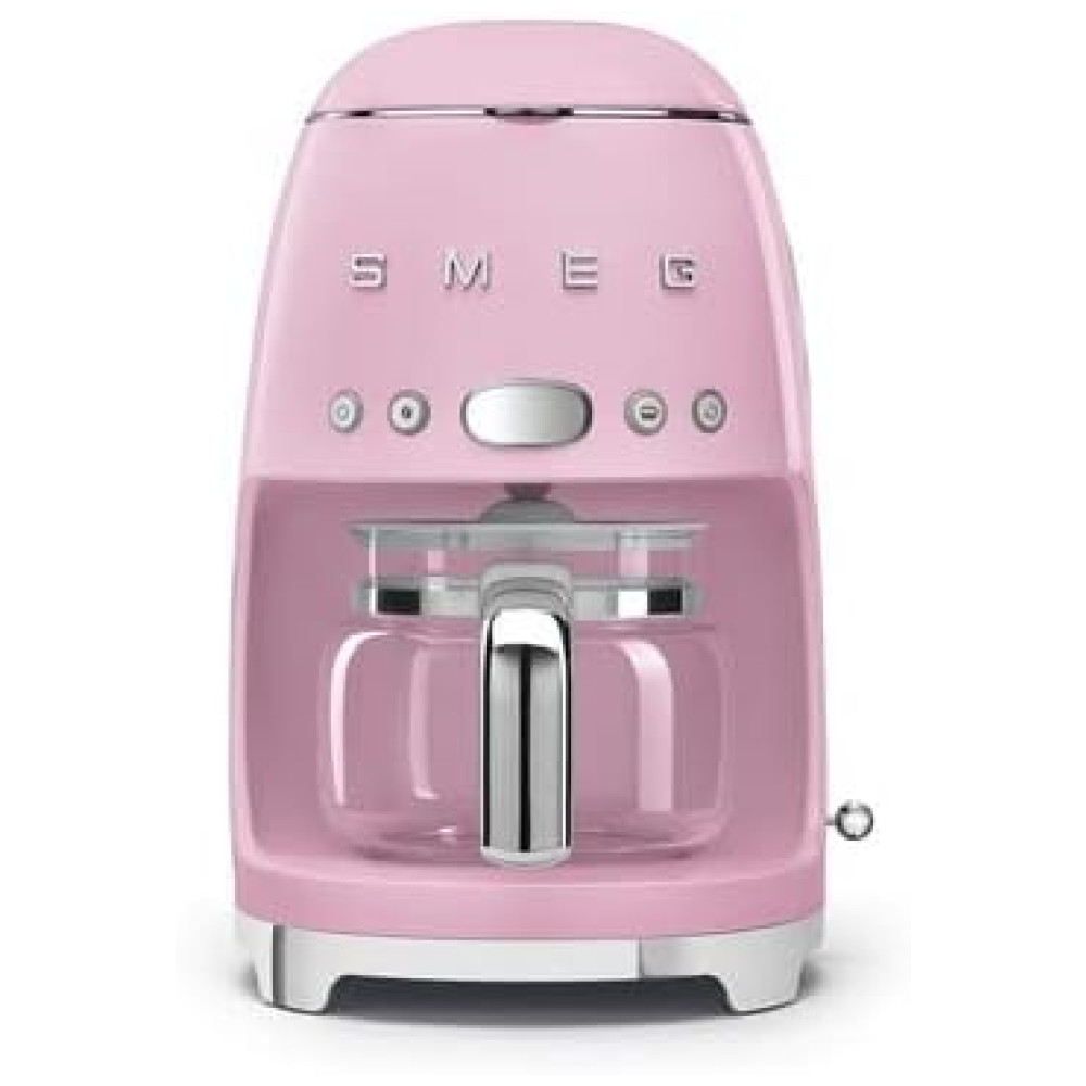 Cafeteira Smeg DCF02 com Jarra de Vidro Extra DCFC01 10 Xícaras – Início Automático Função de Manter Aquecido Design Retrô Anos 1950 Rosa