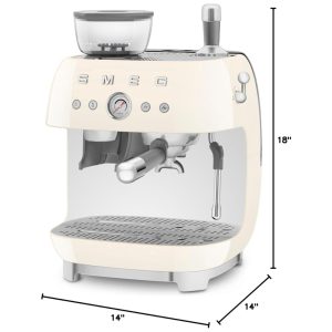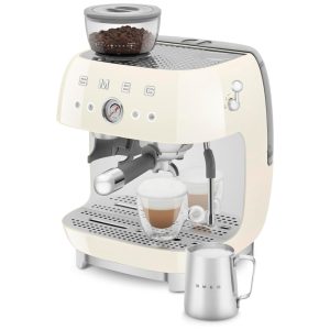 Prepare um expresso único ou duplo com extração precisa e sabor rico usando a Máquina de Café Expresso Semiautomática Smeg. Com moinho de café cônico integrado ajustável, sistema de aquecimento duplo Thermoblock e bocal de vapor em aço inoxidável, você terá temperatura estável, saída de vapor potente e espuma de leite cremosa. O porta-filtro profissional de 58mm garante distribuição uniforme do café, enquanto o manômetro integrado monitora a pressão de extração. Compacta e eficiente, com desligamento automático e o aplicativo MY SMEG Assistant para dicas e instruções adicionais.