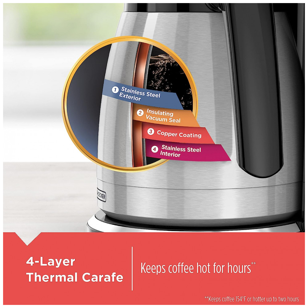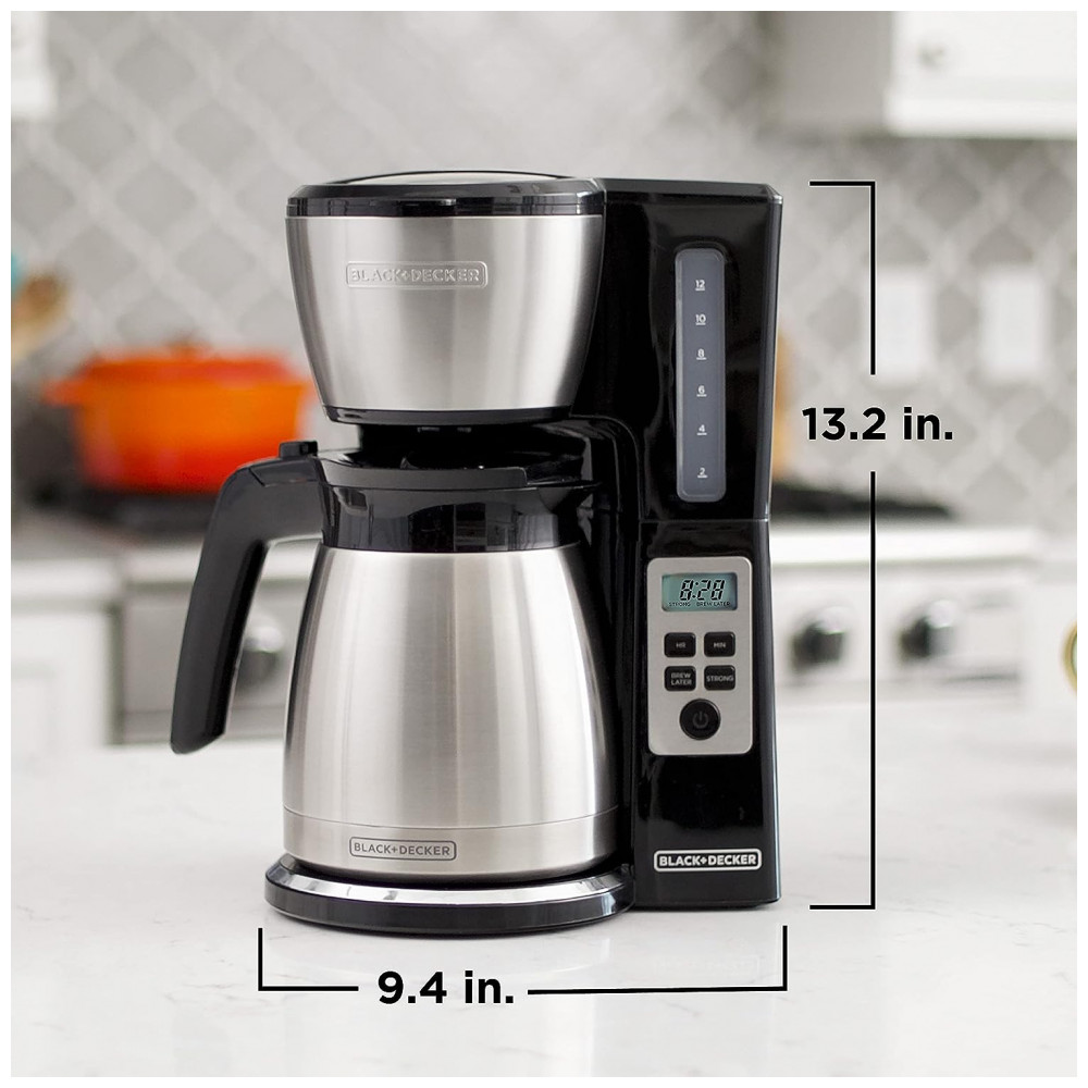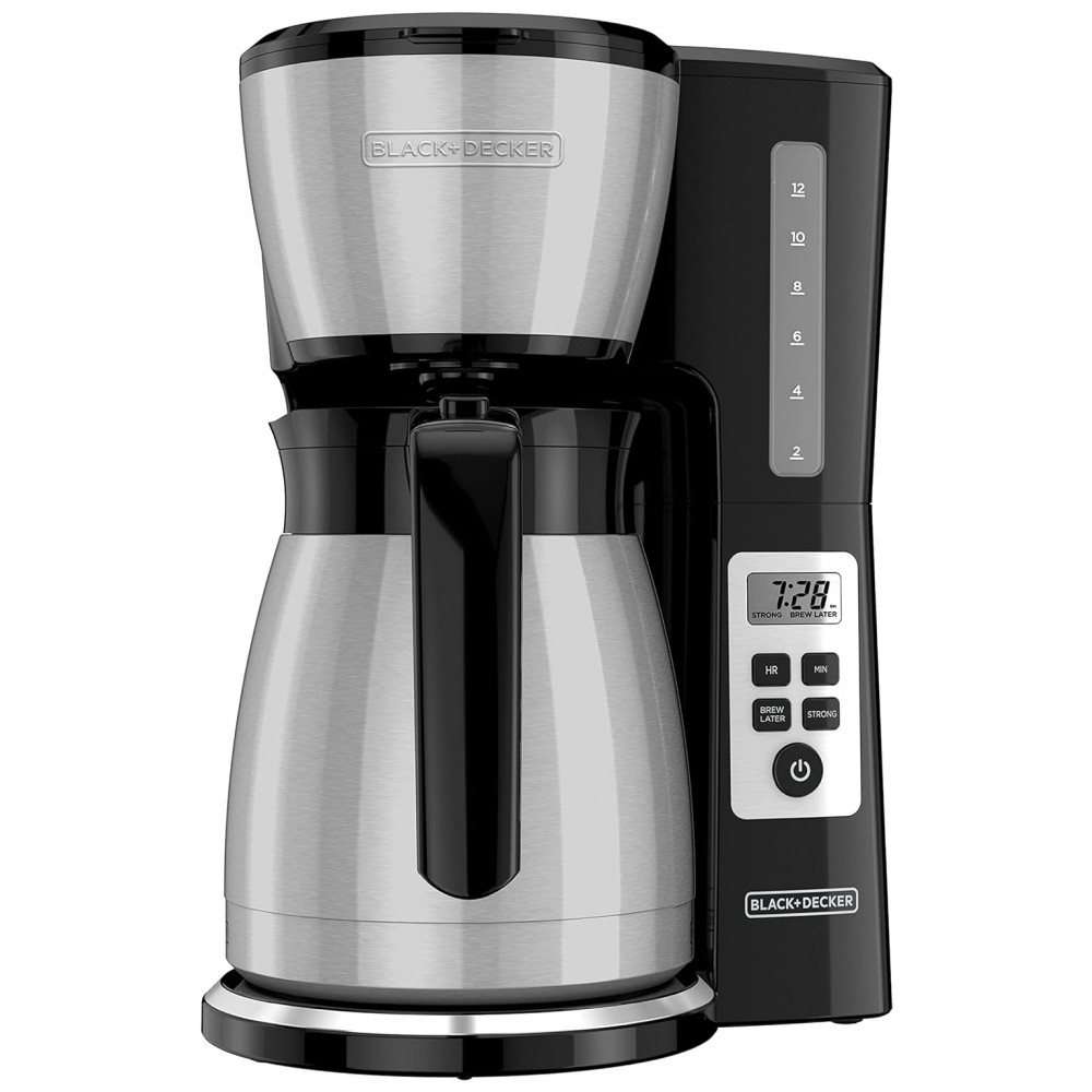 Cafeteira Térmica Programável 12 xícaras com Tecnologia VORTEX 110V 800W BLACK DECKER CM2046S Prata e Preto