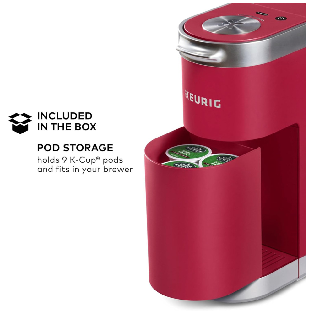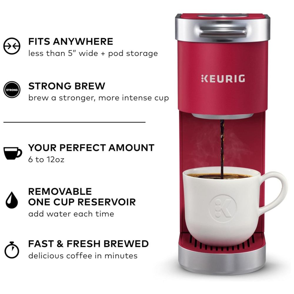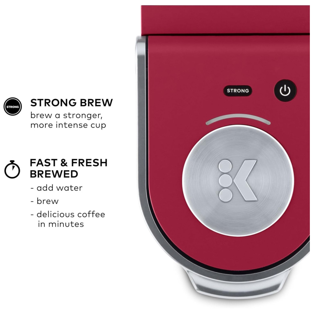 Cor Vermelha. A cafeteira Keurig K Mini Plus apresenta um design elegante é o tamanho perfeito para qualquer espaço ou ocasião. A cafeteira K Mini Plus é fácil de usar sem esforço basta adicionar água fresca ao reservatório removível, colocar sua cápsula K Cup favorita, pressionar o botão de infusão e desfrutar de um café fresco e delicioso em poucos minutos. Escolha entre centenas de deliciosas variedades de vagens da K Cup e desfrute de 6 a 12 xícaras de suas bebidas, café, chá, cacau e gelados favoritos. E para quem gosta de uma bebida mais ousada, selecione o botão Forte para aumentar a força e o sabor arrojado do seu café. Com um reservatório removível de uma única xícara, uma unidade de zenamento de cápsulas para zenar nove de suas cápsulas K Cup favoritas e zenamento de cabos, a cafeteira K Mini Plus é a cervejaria portátil que é perfeita para qualquer café