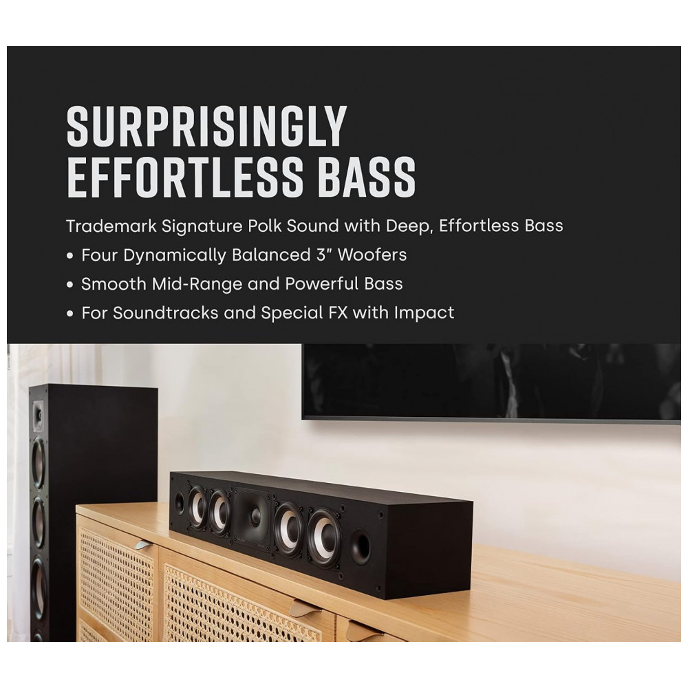 Caixa central slim Polk Audio Monitor XT35 2 vias com quatro woofers de 76 cm preto fosco