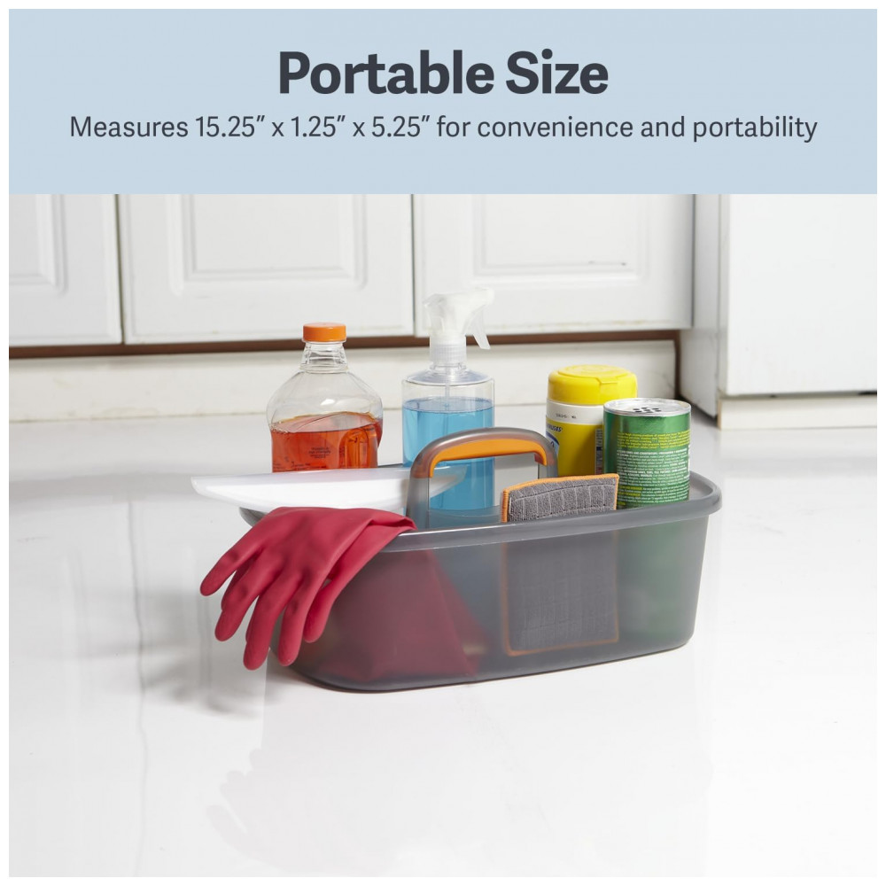 O Casabella Gray Storage Caddy mantém e zena todos os seus materiais de limpeza. Este caddie também pode ser para zenar suprimentos de chuveiro, ferramentas de jardinagem ou até materiais de artes e artesanato Ninhos de design patenteados com Casabella Storage Bucket modelo no. 62440 . O melhor de tudo é que cada balde e caddie é feito nos EUA. Mede 15,25 x 10,25 x 5,25 polegadas.