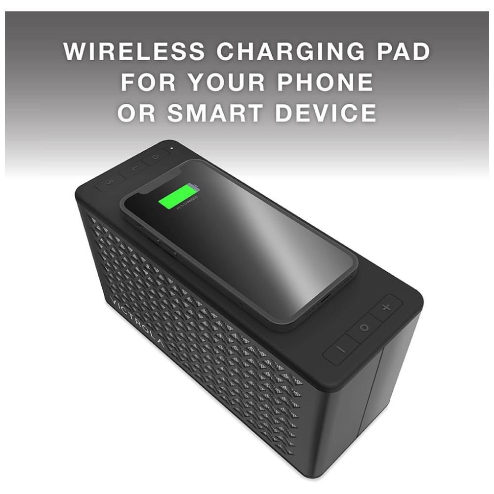Caixa de Som Bluetooth de Mesa Resistente a Água IP67 com Bateria de 20 Horas de Duração Victrola Preta