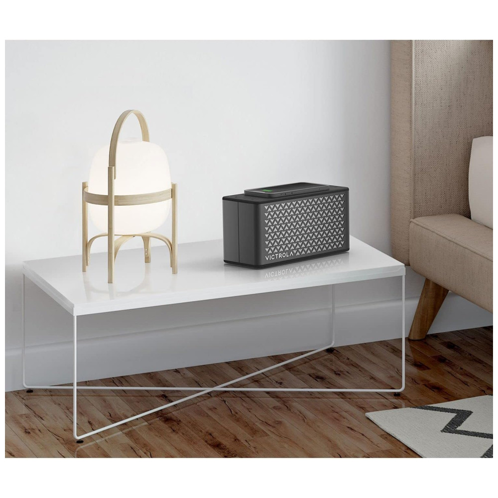 O alto-falante Bluetooth Victrola Music Edition 2 é um acessório ultra estiloso com um design versátil de mesa, perfeito para ouvir música em casa, pequenas festas e reuniões ao ar livre. Com um radiador de graves passivo, ele oferece graves profundos e som de alta qualidade, com médios completos e agudos nítidos. Este alto-falante portátil é totalmente à prova de poeira e à prova d’água, tornando-o durável para aventuras ao ar livre, festas e piqueniques. Com carga total, este alto-falante Bluetooth portátil dura 20 horas e pode ser facilmente carregado através de uma porta USBC conveniente. Além disso, possui uma base de carregamento sem fio integrada que carrega qualquer dispositivo inteligente habilitado para carregamento sem fio, como o seu smartphone. A construção elegante em aço, com painéis de TPU macios, oferece um som premium e durabilidade suficiente até mesmo para as condições mais adversas. Você pode expandir seu alto-falante para um alto-falante de música estéreo emparelhando-o com outro alto-falante. Transmita música para este alto-falante Bluetooth de qualquer dispositivo, inclusive de um dispositivo de armazenamento em massa USBC. Proporciona um som excepcional em todos os ambientes e pode ser colocado em qualquer lugar da sua casa, local de trabalho ou fora, seja uma mesa lateral, mesa de cabeceira, mesa de escritório ou em seu pátio, gramado, quintal ou fazenda.