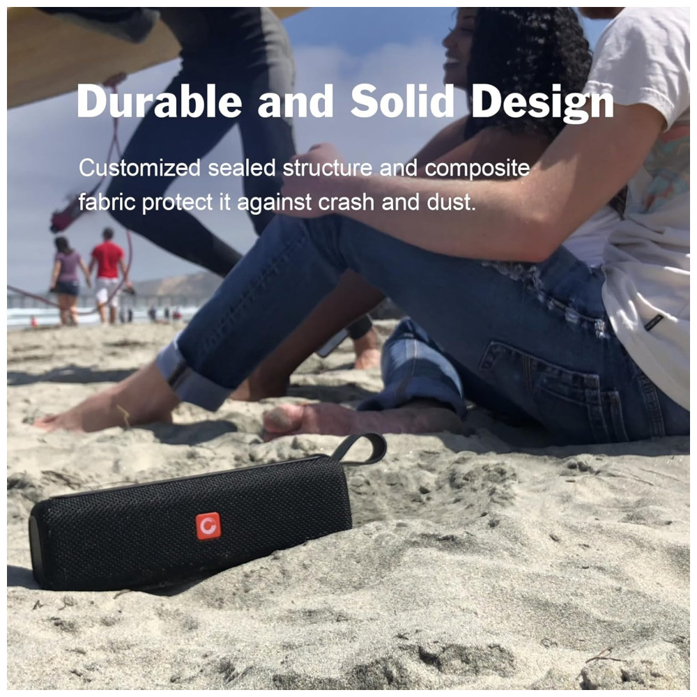 IPX6 à prova dágua, à prova de poeira, à prova de colisões o alto falante Bluetooth à prova dágua é feito com um tecido durável que o protege da água, areia e poeira. A caixa de silicone robusta e a tampa da porta tornam o alto falante resistente a choques.