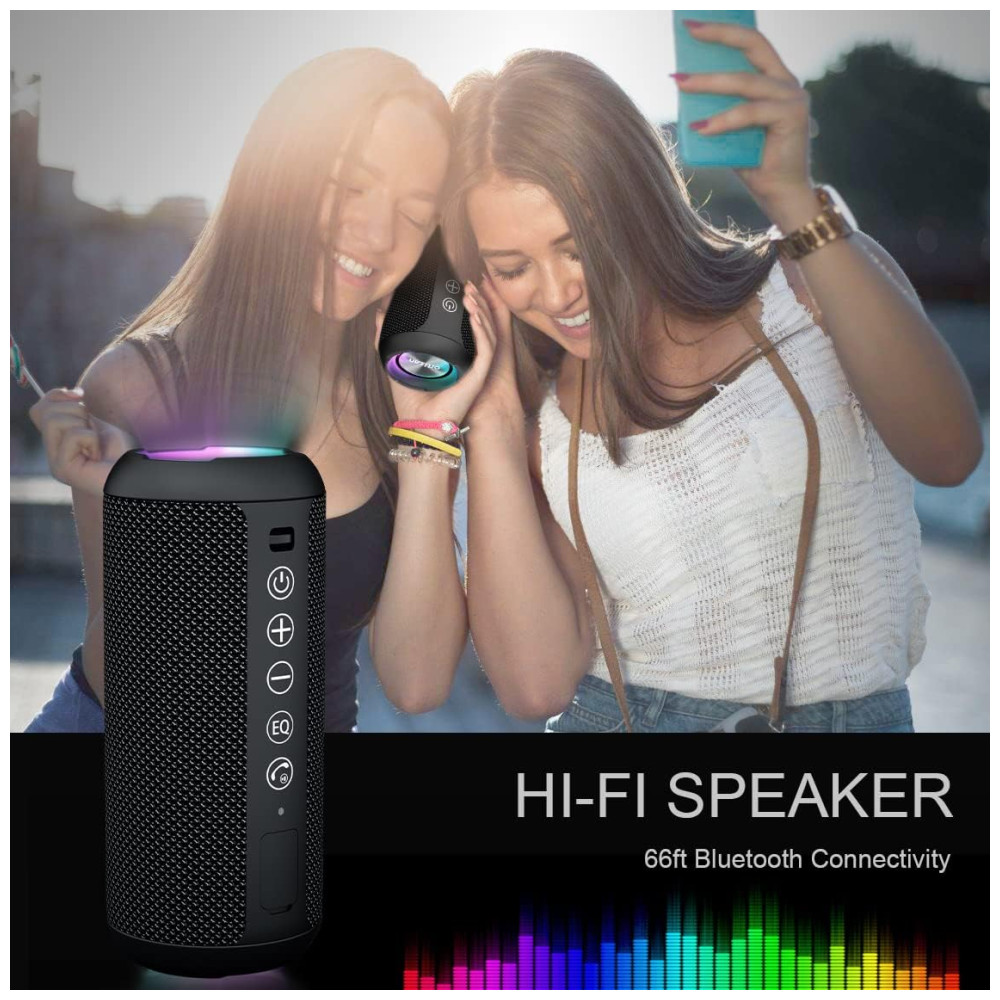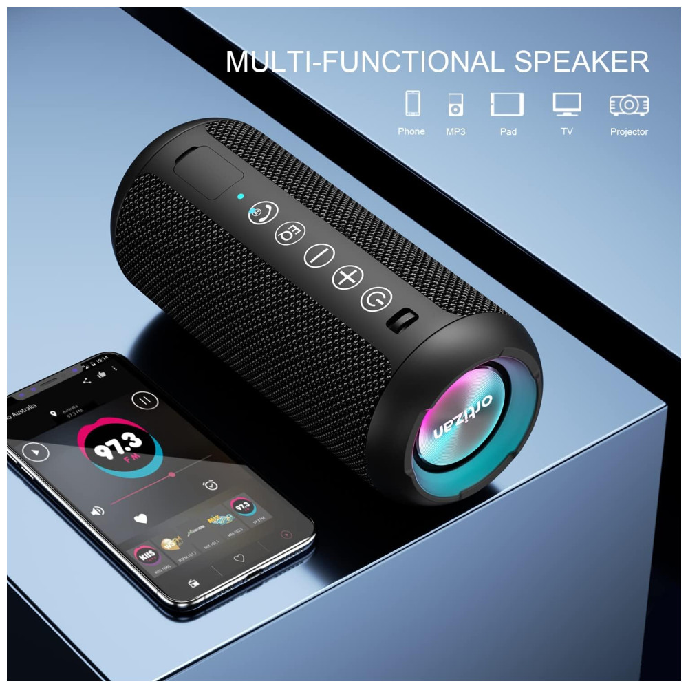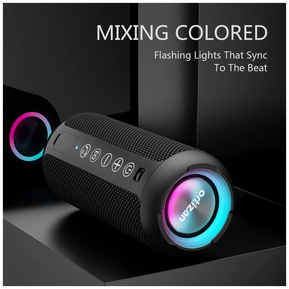 Sinal Bluetooth 5.0 atualizado O alto falante Bluetooth sem fio Ortizan pode normalmente conectar o dispositivo a uma distância de 66 pés desobstruídos, mesmo em condições difíceis e o sinal não é perturbado. O chip bluetooth 5.0 lê facilmente a lista de reprodução de música e conecta qualquer dispositivo, como smartphone, TV e laptop