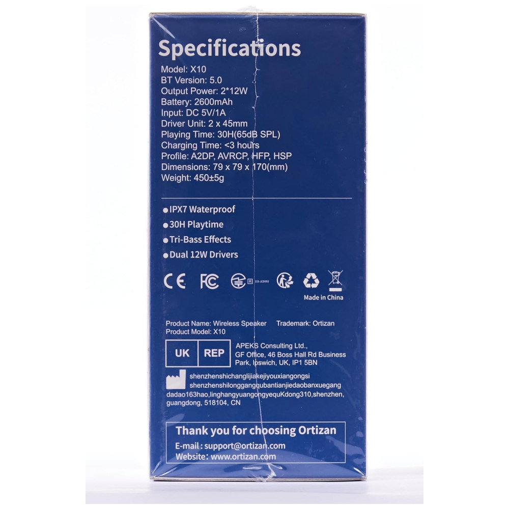 Caixa de Som Bluetooth sem Fio Portátil à Prova d IPX7 24W até 30H ORTIZAN X10 Preto